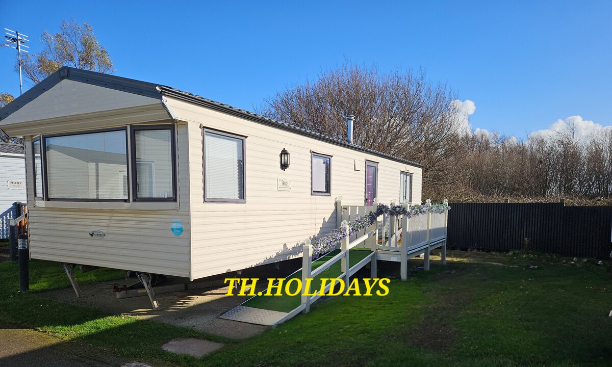 Nuestra caravana está situada en el parque de caravanas Lyons Robin Hood en Rhyl, que ofrece seguridad in situ las 24 horas. Lyons Robin Hood es el parque de vacaciones más conocido y antiguo. Los niños pueden disfrutar de una zona de juegos de aventura al aire libre, una zona de juegos infantil interior y una sala de juegos. ¡Piscinas, minigolf, cancha de baloncesto y mucho más! Relájate en uno de los bares del lugar o juega un partido de golf. Un supermercado, una lavandería y comida para llevar en el hotel hacen de Lyons Robin Hood una escapada sencilla y alegre para todos.