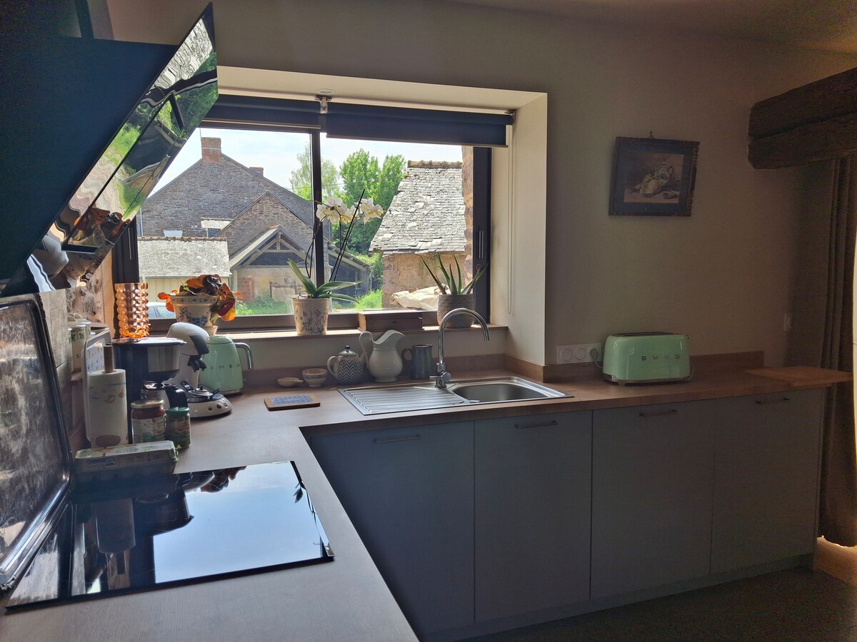 Bienvenue dans notre maison rénovée à neuf, au calme, à 10 min du centre-ville, du parc expo et de l’aéroport ! Très confortable, décoration soignée, dans un cocon de verdure, idéale pour une escapade touristique ou un séjour prof. permet d’accueillir jusqu’à 4 pers. Parking privé. En prolongement de notre longère, maison indépendante de 65 m2: 1 pièce de vie lumineuse, à l'étage 1 chambre pour 2, 1 mezzanine avec 1 canapé lit 2 places, 1 salle de douche, 1 terrasse de 20 m2 et 1 jardin