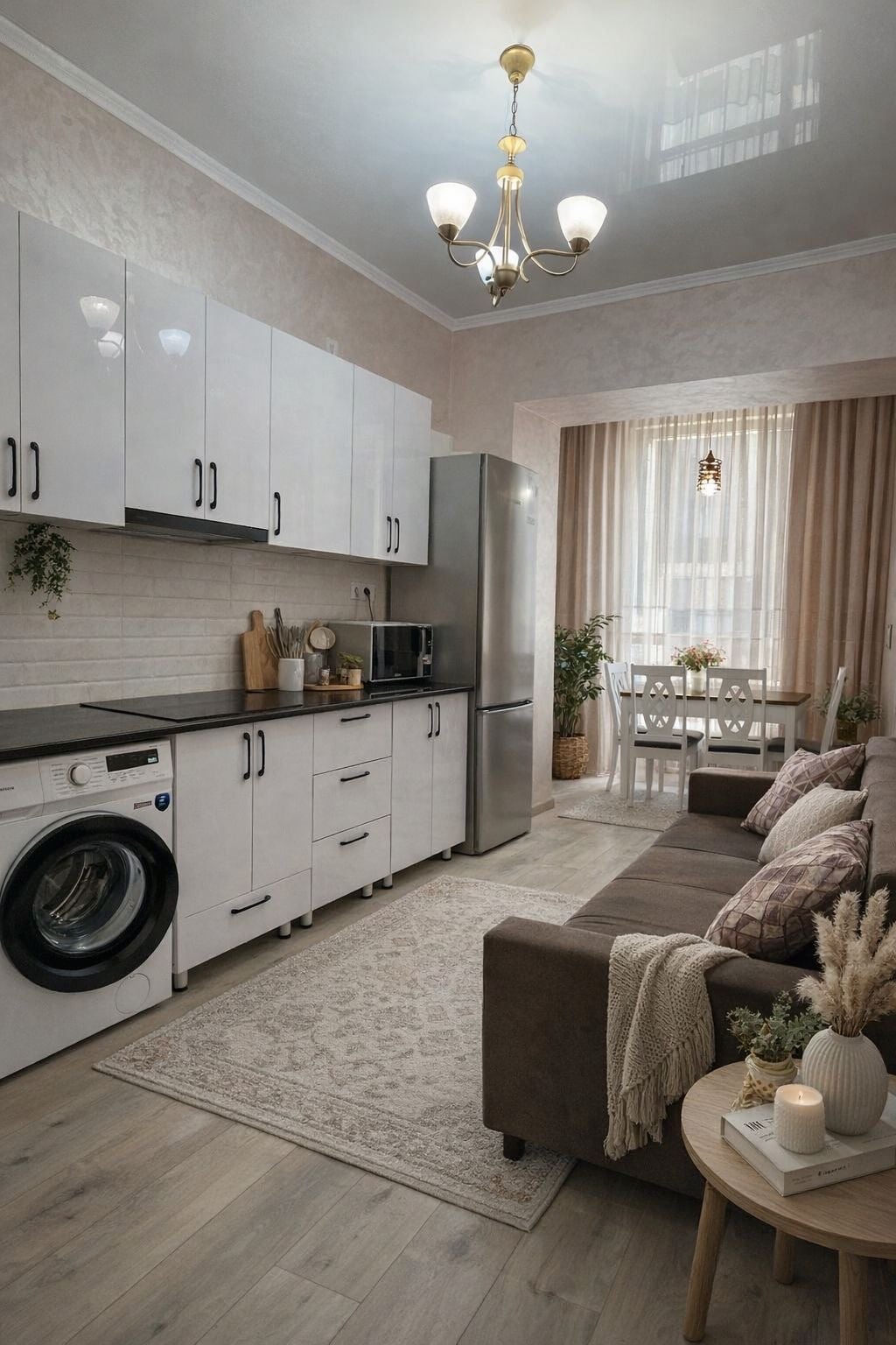 Alojamientos únicos para toda la familia crearán recuerdos duraderos. El apartamento está en el primer piso, en un nuevo residencial con una infraestructura práctica. El interior del residencial está vallado y es accesible solo para los residentes. La entrada a la entrada y al patio es por llaves magnéticas. Cafés, restaurantes, centro comercial con cines y boutiques están a poca distancia a pie. Camina por el río Malaya Almatinka, plazas, parques.