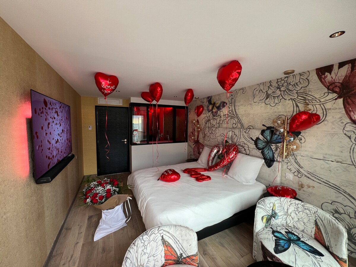L’Artilove, el encanto lujoso, único y exclusivo, certificado con 5 estrellas, frente al mar - Regálese una escapada romántica única en Les Sables-d’Olonne, pensada para parejas que buscan relajación y evasión Ubicada en la planta superior, esta suite de lujo de 50 m², donde la comodidad se une a la elegancia, tiene como únicos vecinos el cielo y el mar. Este nido de amor totalmente renovado le da la bienvenida en un ambiente acogedor digno de una suite de hotel.