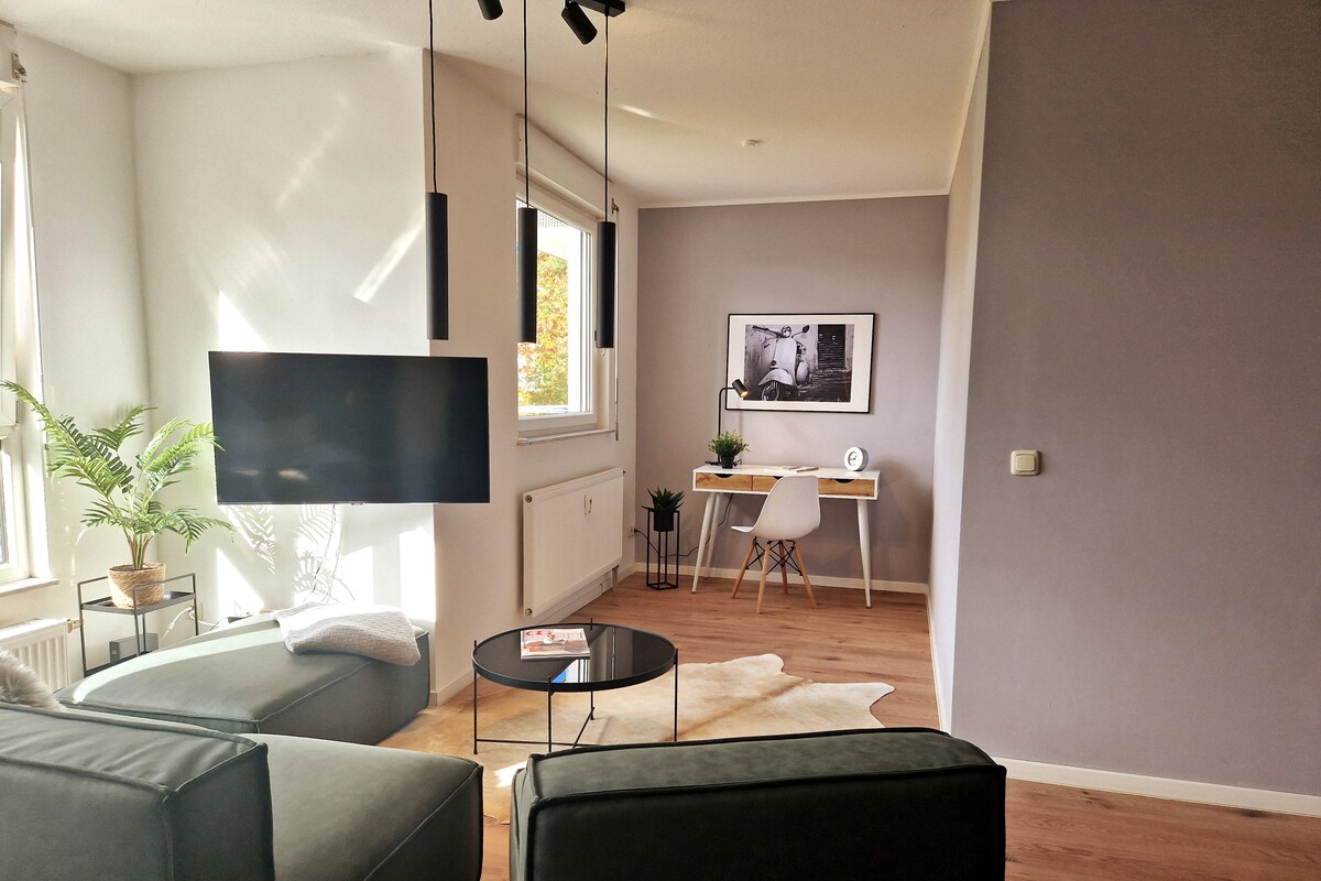 Este moderno apartamento reformado cerca del centro ofrece a 2 personas todo lo necesario para una estancia larga o corta. Cuenta con una cocina totalmente equipada, lavadora secadora Samsung, wifi y servicios de streaming. En el despacho en casa separado se puede trabajar de forma relajada y sin molestias. Las grandes ventanas dejan entrar el sol en la habitación y ofrecen una bonita vista al verde interior del complejo. Disfruta de la vida en este alojamiento tranquilo y céntrico.