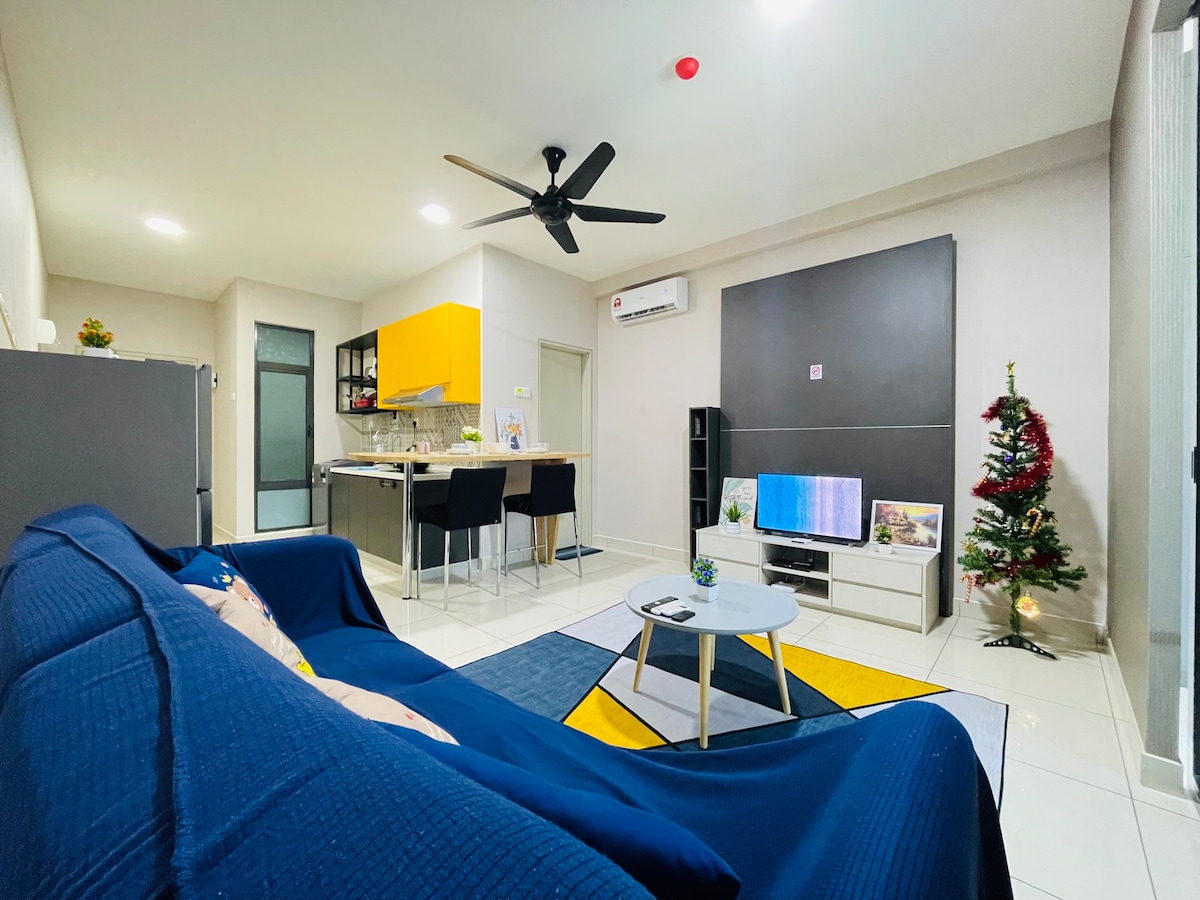 Este apartamento de 1 dormitorio cuenta con una vista impresionante del horizonte de KL. Cuenta con un salón con sofá de 3 plazas, mesa de comedor, cocina, escritorio y un gran balcón frente a la Torre KL y las Torres Petronas. Viene con TV de 55 pulgadas, wifi de alta velocidad y una cama tamaño queen en la que puedes acomodarte cómodamente. *La otra unidad de este apartamento de llave doble es un estudio compacto con cama tamaño queen, despensa, baño y bañera. Pueden caber amigos que viajan contigo con privacidad. ¡Te invitamos a solicitar más información!