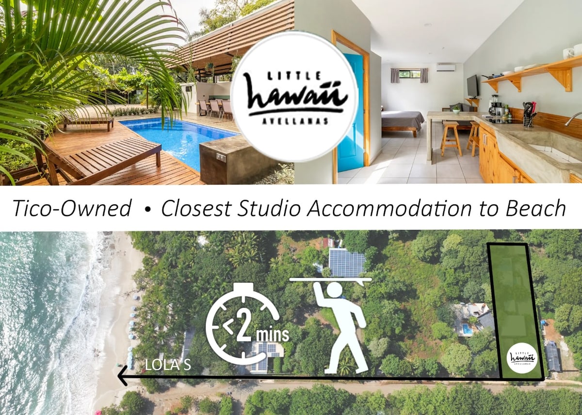 At Little Hawaii Avellanas we offer comfortable accommodation a 2-minute walk away from the world famous beach break of Playa Avellanas. While other locations advertise close proximity to the beach, they often lead you down long-trails through a protected mangrove (driving and parking is prohibited in the Mangrove). Our street is the only street in Avellanas with road to the beach directly in front of the surf breaks.