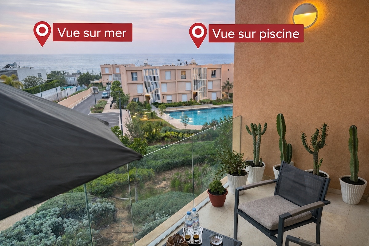 🌞 Welcome to Taghazout Bay! Stay in our ideally located apartment, just a 5-minute walk from one of the most beautiful beaches in the area, in the closest residence to the sea and steps away from the best surf spots. In the heart of Taghazout Bay, enjoy a perfect setting between ocean, sunshine and coastal lifestyle. Private garden, premium residence with pool and nearby shops. With over 100 five-star reviews, it stands among the most sought-after stays in the area.