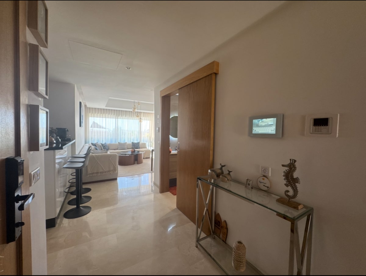 Magnifique appartement à Tamraght – Confort, espace et proximité de la plage Découvrez ce superbe appartement spacieux situé à Tamraght, à seulement 450m de la plage, situé dans une résidence sécurisée avec piscine. Il comprend 2 chambres, une salle de bain, des toilettes séparées, un grand salon, une salle à manger, une grande cuisine, 2 terrasses et un grand jardin privatif. Parking privé gratuit et fibre optique, idéal pour le télétravail. 📍tamraght / agadir