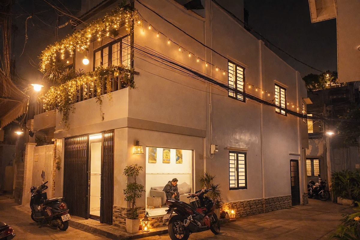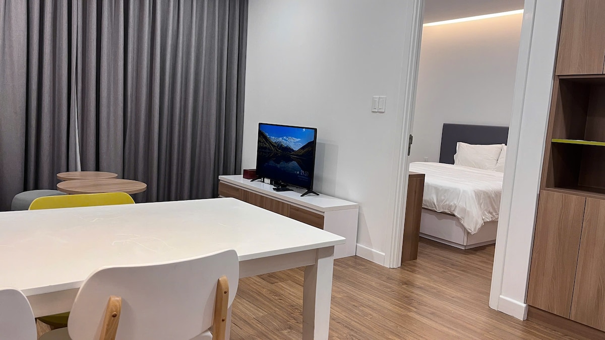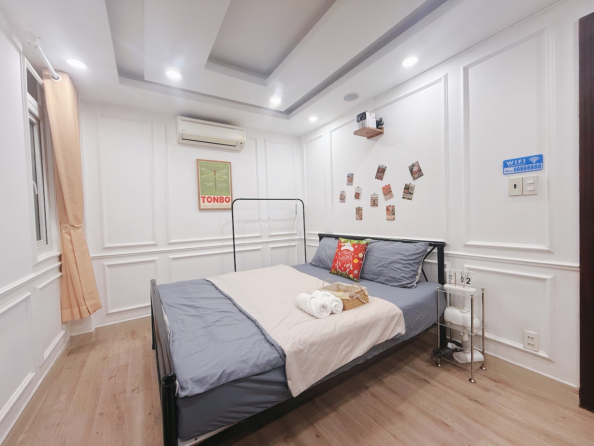 Vietnamese-Mediterranean Studio in central: • 2 km to Tan Son Nhat Airport & Phan Xich Long food street • 3 km to District 1 & major attractions, 4 km to Notre-Dame Cathedral Surrounded by popular Vietnamese eateries • Spacious bed (up to 3 guests) • Modern bathroom with bathtub & toiletries • Parking for cars & motorbikes • Café downstairs & photogenic corners • Projector, water purifier, coffee machine Enjoy thoughtful hospitality blending international touches with classic Vietnamese charm.