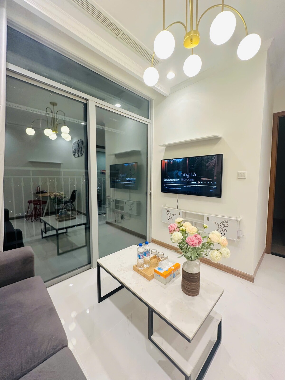 Luxury 5* The Opera Residence Corner Apartment by ChiHome - River View Bason District 1, The LandMark 81, The Galleria, The Mett Office, District 2 Sala Thiso Mall. - Tháp B, Scala, Level 1x căn số 10 - Diện tích: 70m2 (căn góc) - Bao gồm 2 phòng ngủ, 2WC, thoải mái ở từ 2-4 người. - Tivi thông minh 65inch với Netflix và YouTube - Sofa, ghế Armchair, bàn trà. - Bàn ăn 4 ghế - Đồ dùng nấu ăn đầy đủ - Internet không dây tốc độ cao có sẵn - Điều hòa nhiệt độ cho cả nhà - Ra vào tòa nhà 24/7