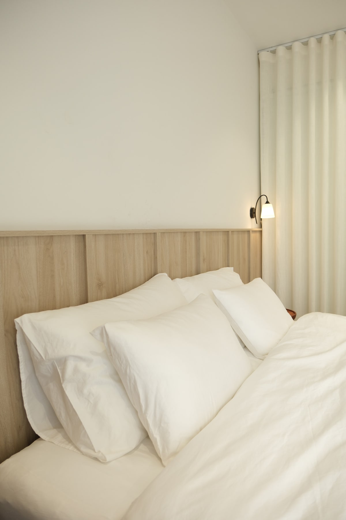 La habitación tiene un estilo rústico natural, con materiales de madera y tonos cálidos, creando una sensación de cercanía y relajación. El balcón privado se abre a una vista verde del parque, lleno de luz natural y aire fresco. Espacio tranquilo, minimalista pero totalmente equipado, ideal para relajarse, leer libros o disfrutar de una taza de café en medio del ritmo lento de la vida.