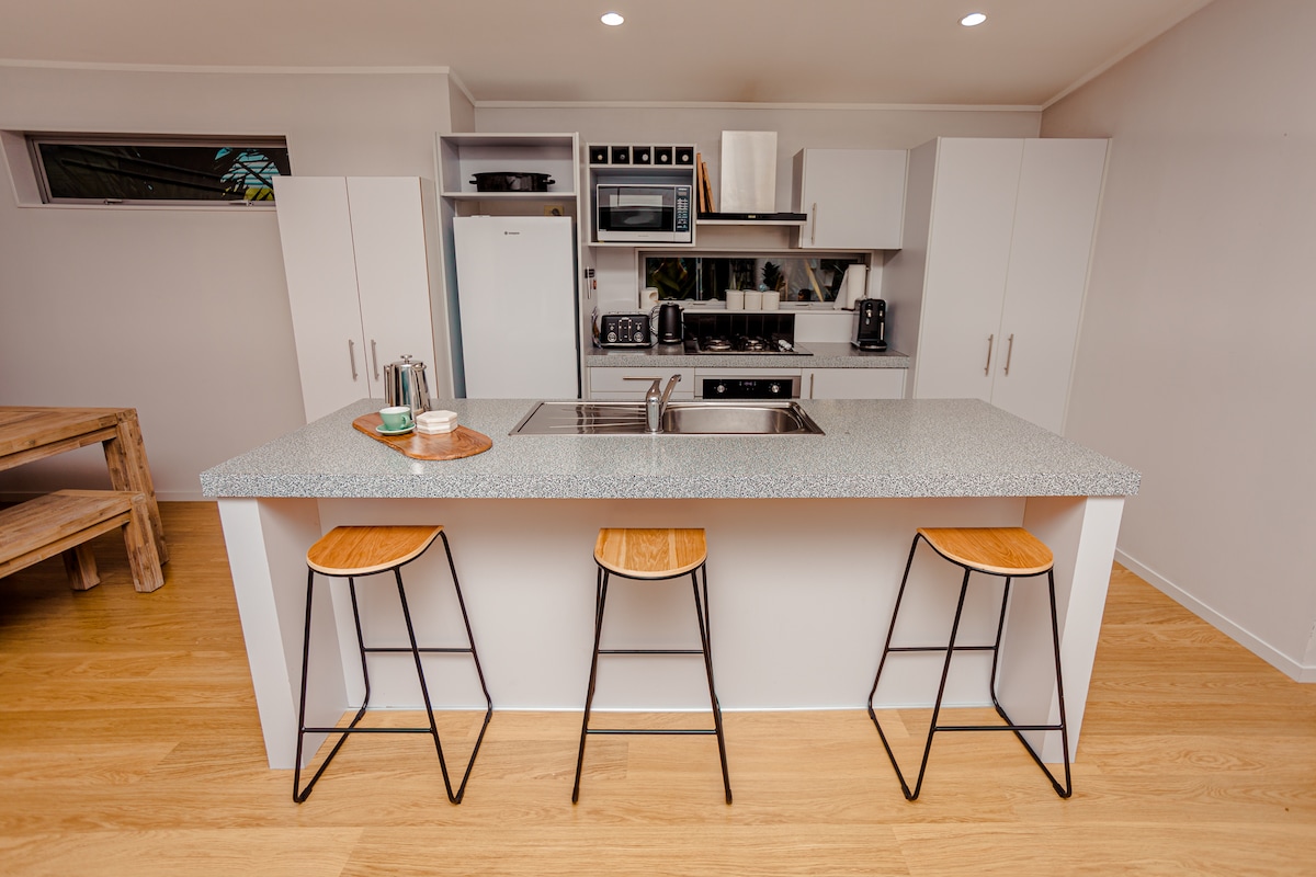 Welcome to The Fantail! A cute & cosy cottage in the heart of Ohakune. Central location with town, ski fields, hiking/cycling tracks all at your fingertips. Whip up a tasty breakfast in a well-equipped kitchen & enjoy refreshing ambience in an open-plan living space & spacious deck for a cuppa or evening tipple. Shred the slopes, then immerse & indulge in the spa pool under the stars. Accommodates 4 but configures perfectly for a small family or couples retreat & bring the furry friends too!