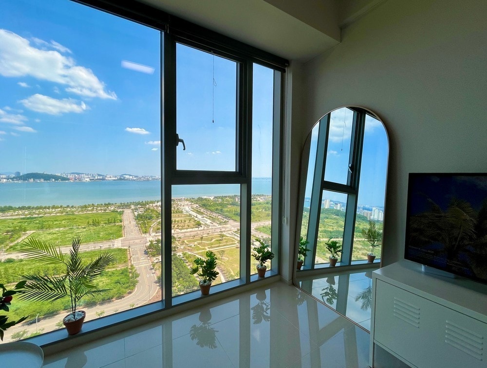 안녕하세요. 저희는 다양한 휴식 공간을 연구하고 제공하는 Onda입니다. 이 곳에서 머무르실 모든 분들께서 편안하고 행복한 시간을 보내기를 바랍니다. [숙소 소개] '스페이스 인더문( SPACE IN THE MOON)'은 인천 공항 15분 거리, 영종도 주요 관광지 5분~25분 이내 거리에 있는 인천 영종도, 서해 바다와 초록 송산공원, 인천대교가 내려다보이는 고층, 양면 통유리창으로 시원하게 바라보는 오션뷰, 대형 복층 원룸 구조의 깨끗한 레지던스 호텔 감성 숙소 입니다. 서울에서 가까운 인천 서해 바다의 너른 풍경, 빠듯한 일상 속 잠시 쉼이 필요할 때 몸도 마음도 가볍게 놀러오세요 :) 바다와 초록 공원이 내려다보이는 고층, 양면 통유리창으로 바라보는 시원한 통창 오션뷰, 넓고 쾌적한 레지던스 대형 복층 원룸 감성 숙소 [객실 유형] 복층형 : 거실+주방+침실A(퀸1)+화장실1