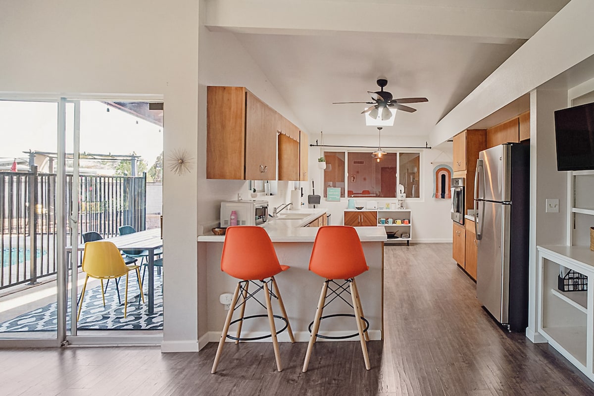 Nuestra casa de diseño vanguardista es una expresión divertida del diseño de mediados de siglo combinado con toques modernos, todo en un espacio elegante y encantador que evoca placeres simples como conversaciones estelares, quedadas en el patio, barbacoa, piscina, buena música y competencia amistosa a través de juegos de la vieja escuela. Disfruta de todo lo que Tucson tiene para ofrecer: abundante sol, increíbles puestas de sol, cactus en flor (echa un vistazo al Parque Nacional Saguaro). Hay fabulosos restaurantes urbanos, tiendas de moda y muchas otras maravillas naturales que explorar.