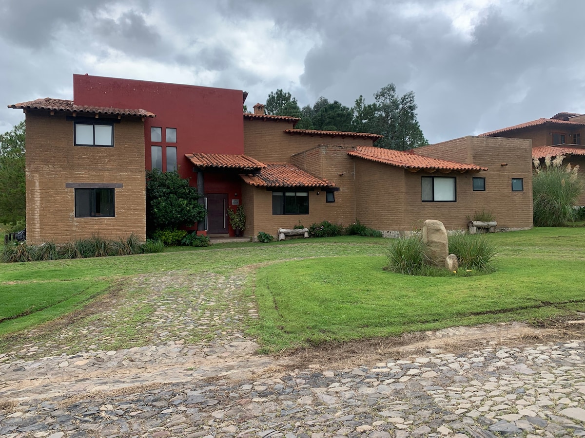 Forget your worries in this spacious and serene space.The House/ Cabin is brand new, located in Tapalpa Country Club.. We combined a modern and rustic ambient in the house.. All the modern appliances in a beautiful country setting. You will have views of horses and cows, each bedroom has a there own bathroom and private patio..The outdoor living area includes a fireplace and outdoor kitchen. There's a wonderful firepit to enjoy also..There is also a golf course in the community..