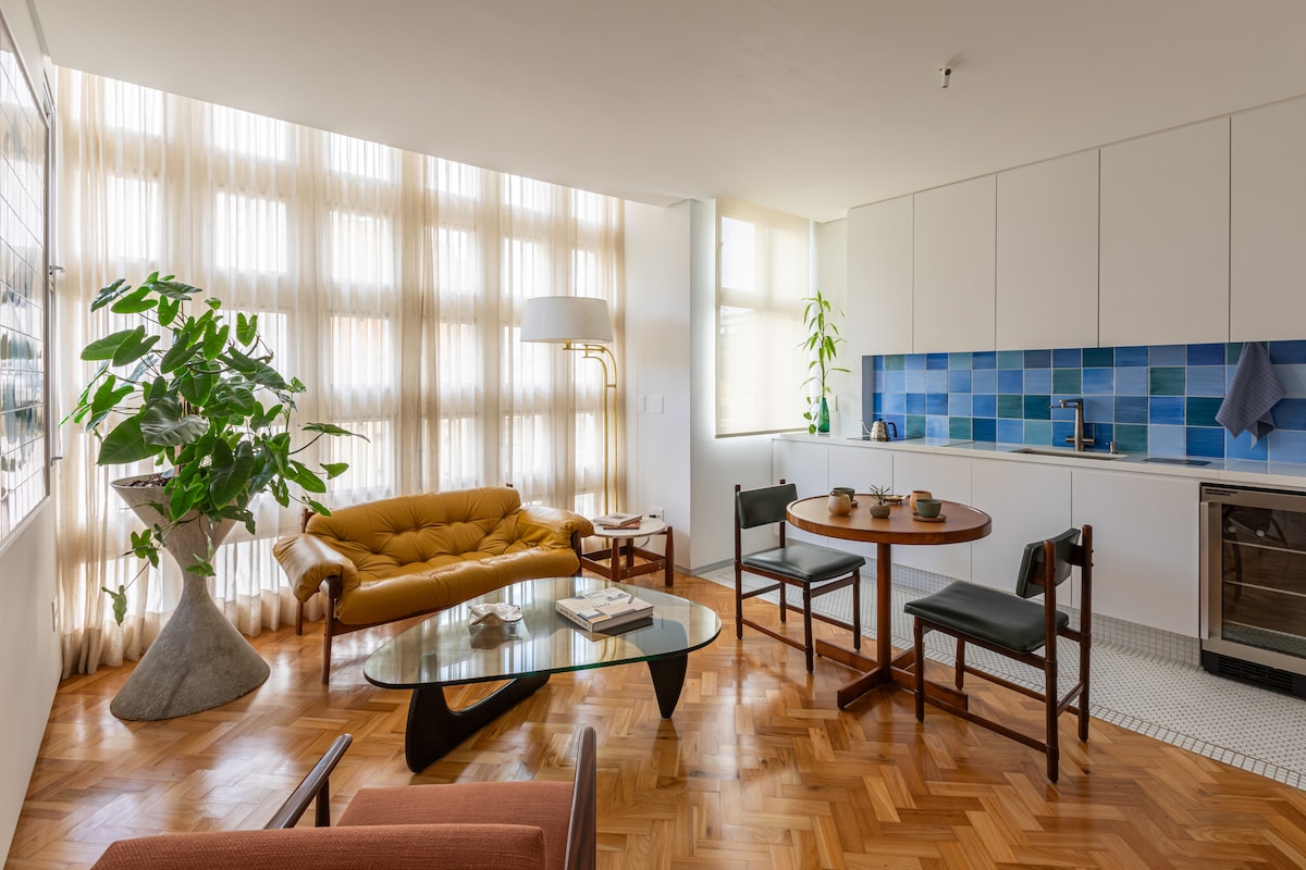 ¡Te damos la bienvenida al Apartamento Carijós! Ubicado en el piso 10 de un edificio de los años 50 totalmente renovado, nuestro espacio combina arquitectura, diseño brasileño, comodidad y elegancia, ideal para aquellos que buscan una experiencia única en la ciudad. Fotos: Estudio Tertúlia