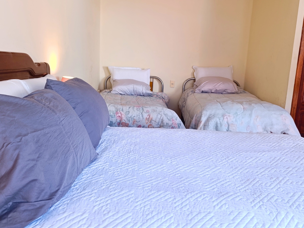 ¡Bienvenido/a a nuestra suite en la zona central! Nuestro departamento recién remodelado cuenta con dos ambientes: una cocina y comedor, y un dormitorio con una cama matrimonial, con opcion de añadir un colchon en el piso, ademas cuenta con baño privado y parqueo. Nuestra ubicación es perfecta estamos a 6 cuadras de la Plaza Principal, a solo 2 cuadras de un Mirador impresionante y a 4 cuadras del Mercado Central. ¡Esperamos que disfrutes tu estadía con nosotros!
