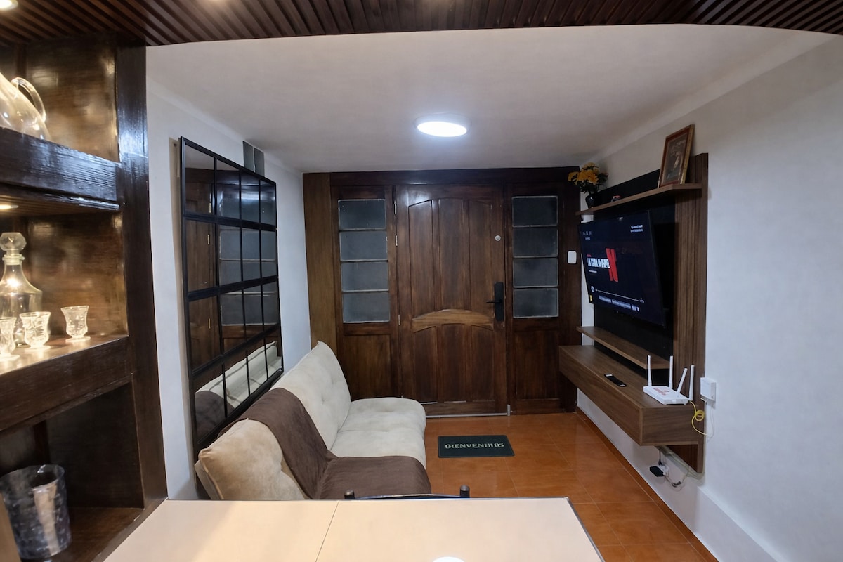 Disfruta de un espacio acogedor, cómodo y con hermosa vista. Relájate y respira tranquilidad. En este encantador departamento puedes disfrutar de la serenidad de la vida rural, sin renunciar a la comodidad. Incluye: Cama de 2 plazas y 1.5 plazas Sala, kitchenette equipado, comedor TV, parlante, agua caliente Cochera Zona tranquila en la periferia de Tarma, perfecta para descansar del ruido de la ciudad, Nos enfocamos en ofrecer un espacio cómodo, limpio y una experiencia agradable.