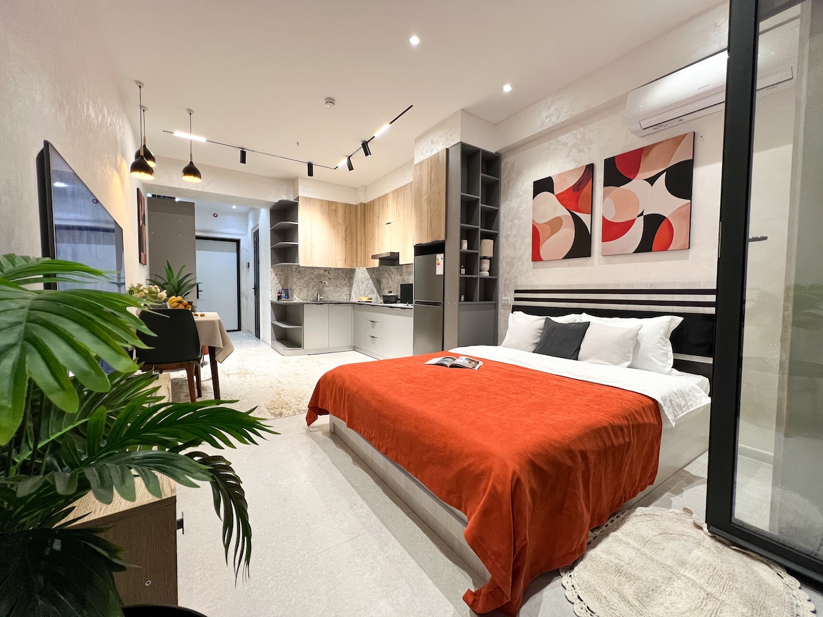 Насладитесь стильным отдыхом в центре Ташкента — в апартаментах с видом на Tashkent City. Рядом Tashkent City park, Magic City, огромный выбор ресторанов. В спальне кондиционер. King-size кровать, дизайнерский интерьер, полностью оборудованная кухня, кофемашина, кондиционер и балкон с видом на Tashkent City. В доме: ресепшен, коворкинг, фитнес-зал, смотровая площадка. Идеально для деловых поездок и романтических выходных. Высокоскоростной Wi-Fi в апартаментах и коворкинге.
