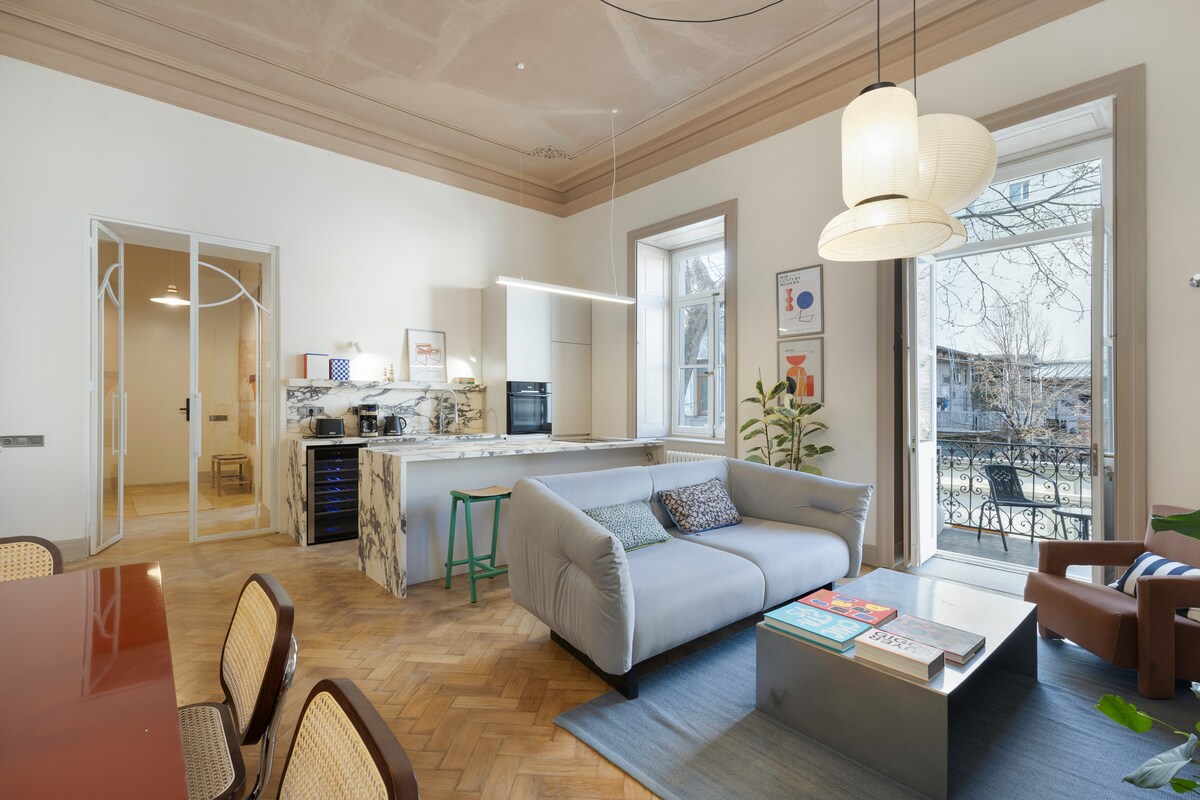 Apartamento recién reformado, de techos altos, lleno de luz y espacioso en el edificio emblemático Hotel de Londres, que abrió sus puertas en 1875. El edificio cuenta con una impresionante escalera y se encuentra en pleno centro de la ciudad, rodeado de parques, museos, el Puente Seco, el Palacio Presidencial y a 10 minutos a pie del casco antiguo. Wifi de alta velocidad para teletrabajadores, sin cable ethernet, ¡pero el wifi es bastante rápido! * Por favor, no solicites un trato fuera de Airbnb. ¡Respeta las reglas!