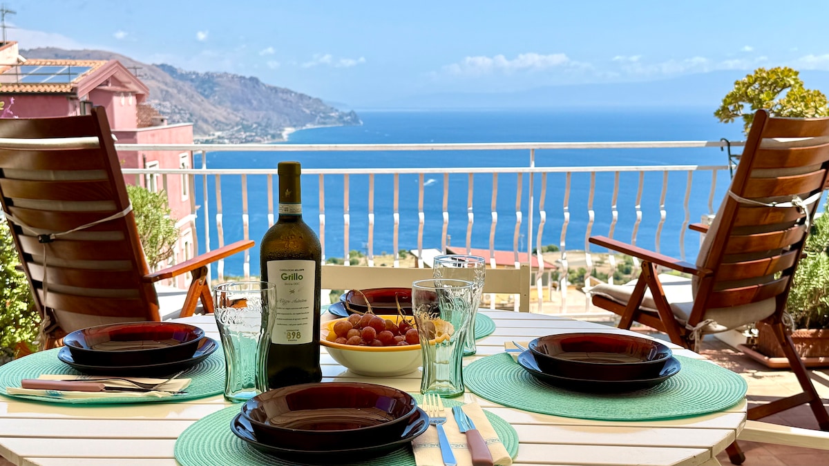 Apartamento de 120 m² con terraza: luminoso, silencioso y elegantemente amueblado en estilo siciliano. Una verdadera casa llena de personalidad, con muebles antiguos, hierro forjado, piedra de lava y cerámica trabajada por hábiles artesanos que cuentan toda la belleza y la fuerza de esta tierra. Los grandes ventanales permiten ver siempre el mar cuando se está en casa. La encantadora terraza le permitirá disfrutar de cada momento: almorzar, leer un libro y beber una buena copa de vino.