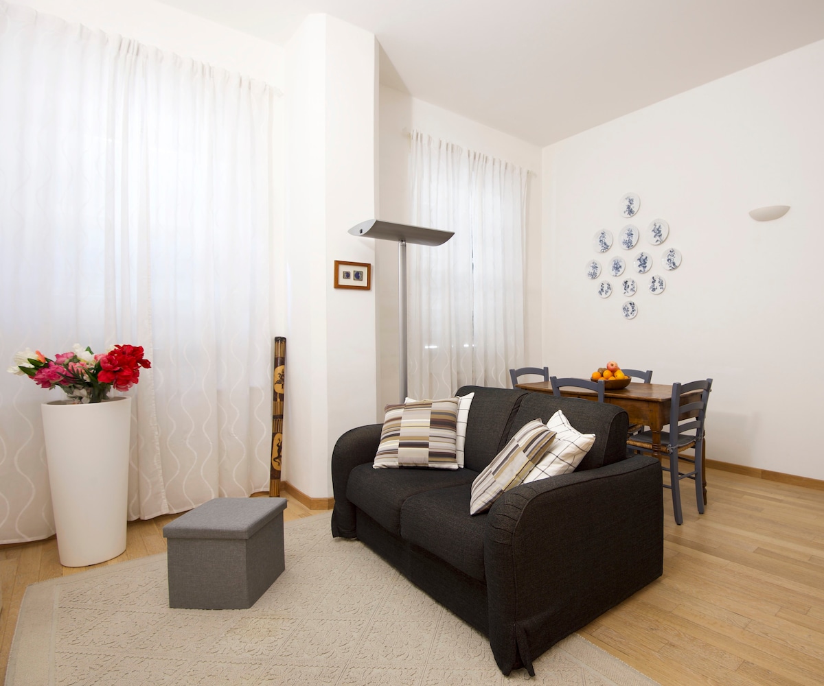 Disfruta del placer de alojarte a pocos pasos de Piazza Santa Croce. Una escapada tranquila en el corazón de Florencia. El aire acondicionado y las ventanas insonorizadas garantizan una comodidad absoluta. La zona es especial, rica en historia y carácter. El desayuno en nuestro acogedor balcón será inolvidable. El departamento incluye una cama doble, un sofá cama individual en el dormitorio y un sofá cama doble en la sala de estar, que puede alojar hasta 5 huéspedes con total comodidad.