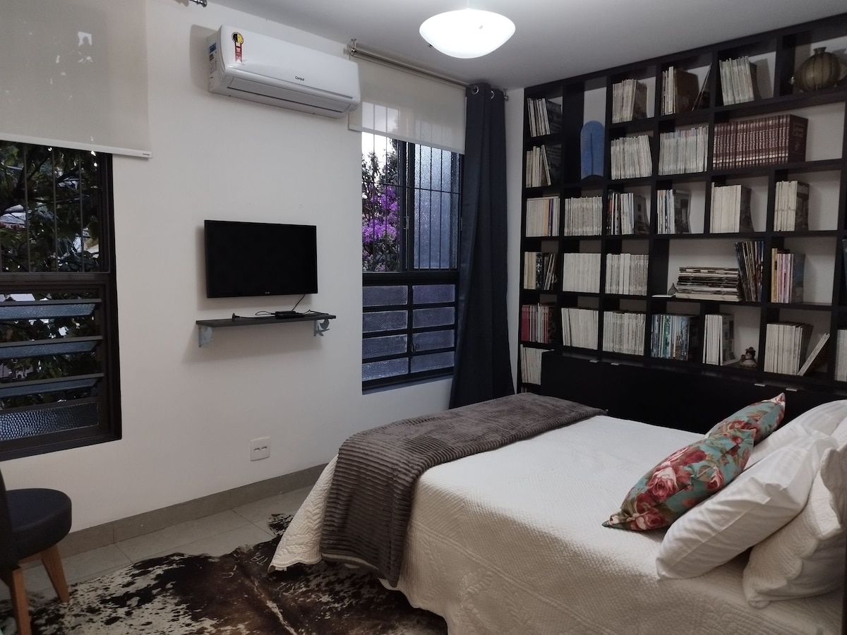 Con 70 m2 , para aquellos que buscan privacidad e independencia . En Savassi, a dos cuadras de Praça da Liberdade y Shopping Pátio Savassi. Con una suite, baño social reversible, sofá cama para los huéspedes, ventana de la suite antirruido, habitación con aire acondicionado y habitación, wifi 300 megas, smartv de 75 pulgadas, Hometheater, cocina completa, microondas, servicio de habitaciones, camarera, valet, piscina , gimnasio, sauna, restaurante y conserje las 24 horas.