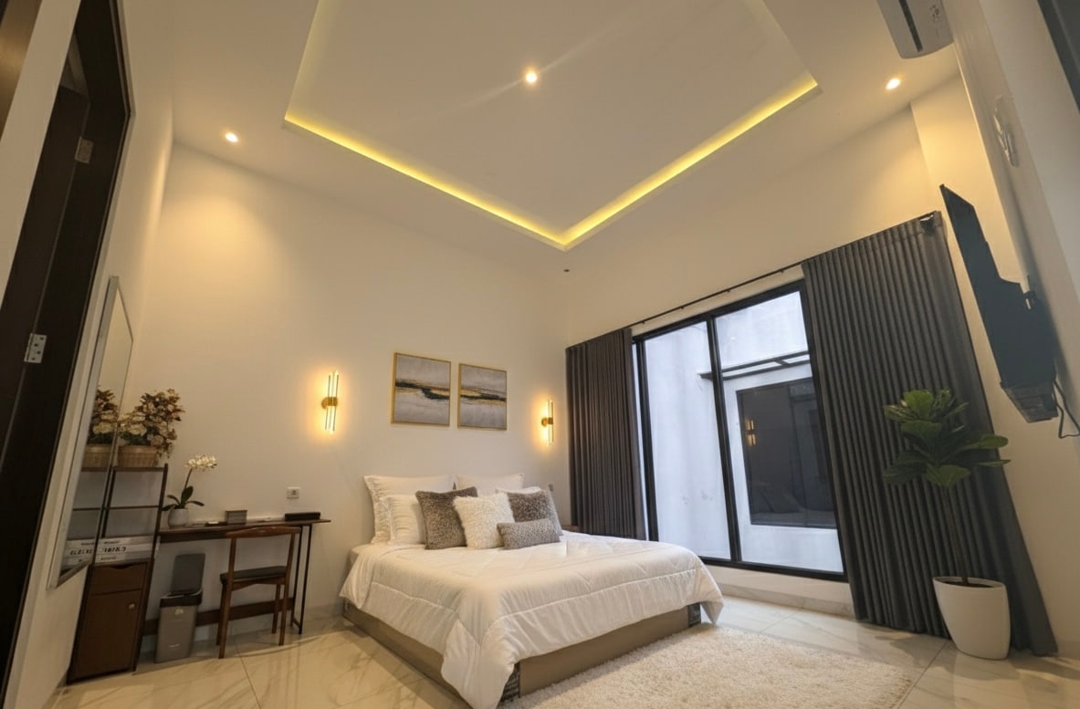 It's luxurious and spacious 162m apartment in West Surabaya, just next to Hotel Ciputra, direct connection to the Mall in walking distance, where you can find groceries, restaurants, movies etc and drive 15 minutes to the famous Layar Seafood, Pakuwon Mall & Pakuwon Trade Center, Surabaya National Hospital, Universitas Ciputra,etc There are 4 bedrooms and 3 bathrooms, Casa Irene @ Voila is homey, clean, have complete residential aminities and might be the perfect destination for You and Family.