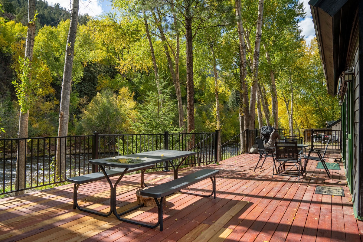 NUEVO ANUNCIO. ¡Deja que el río te cante para dormir! Ubicado a orillas del río San Miguel, este refugio de montaña único es un lugar maravilloso para relajarse y disfrutar de la belleza de la región de Telluride. ¡Los huéspedes tienen un balcón privado con vistas al río, una chimenea de piedra, un gran patio, un amplio estacionamiento y sonidos ilimitados de las montañas que caen en cascada a tu alrededor! El Sawpit Mercantile está a pocos minutos por la carretera para provisiones y bebidas y Telluride está a 15 minutos.