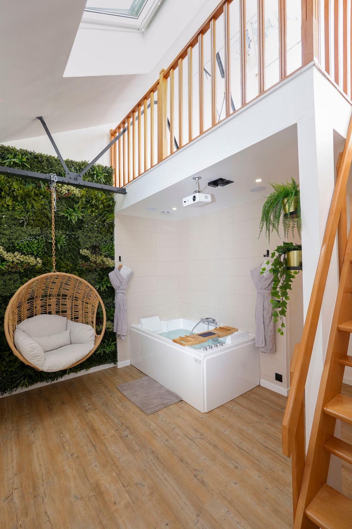 Magnífico loft triplex renovado en el corazón de Le Mans. Moderno y cálido, ofrece una zona de bienestar con bañera de hidromasaje, pared vegetal y sillón colgante. Acogedor salón con sofá mullido y decoración depurada, cocina totalmente equipada. Habitación en altillo bajo los tejados, luminosa y cómoda. Baño contemporáneo con ducha a ras de suelo y lavabo doble. Ideal para un paréntesis de confort, estilo y relax.