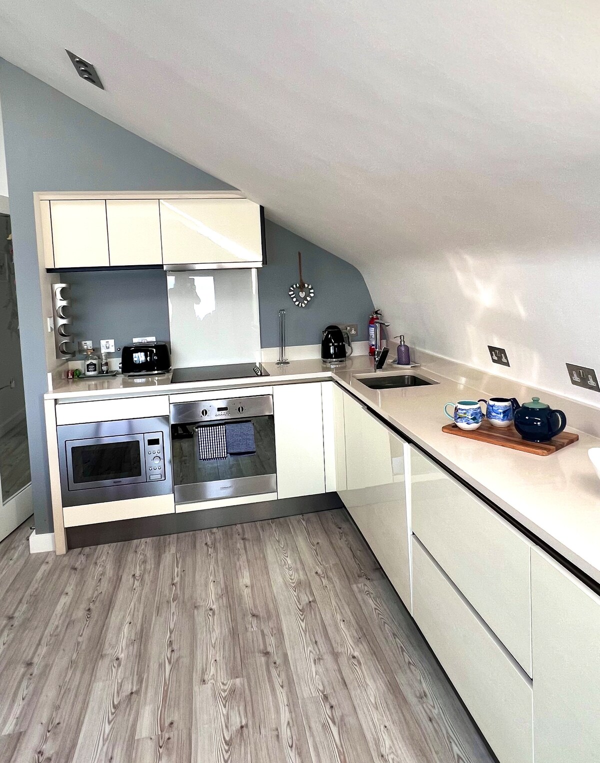 Bienvenido al apartamento sobre Loafley Bakery & Deli Co. en el centro de Tenby. Está perfectamente ubicado, luminoso y muy acogedor. Nuestro apartamento cuenta con una sala de estar, un dormitorio doble, una cocina bien proporcionada y un baño nuevo, todo en el último piso de la hermosa Llandrindod House dentro de las murallas medievales de la ciudad de Tenby. Estamos a menos de un minuto a pie de High Street y Tudor Square, y a un paso de las impresionantes playas de Tenby. Los aparcamientos locales también están a solo unos minutos.