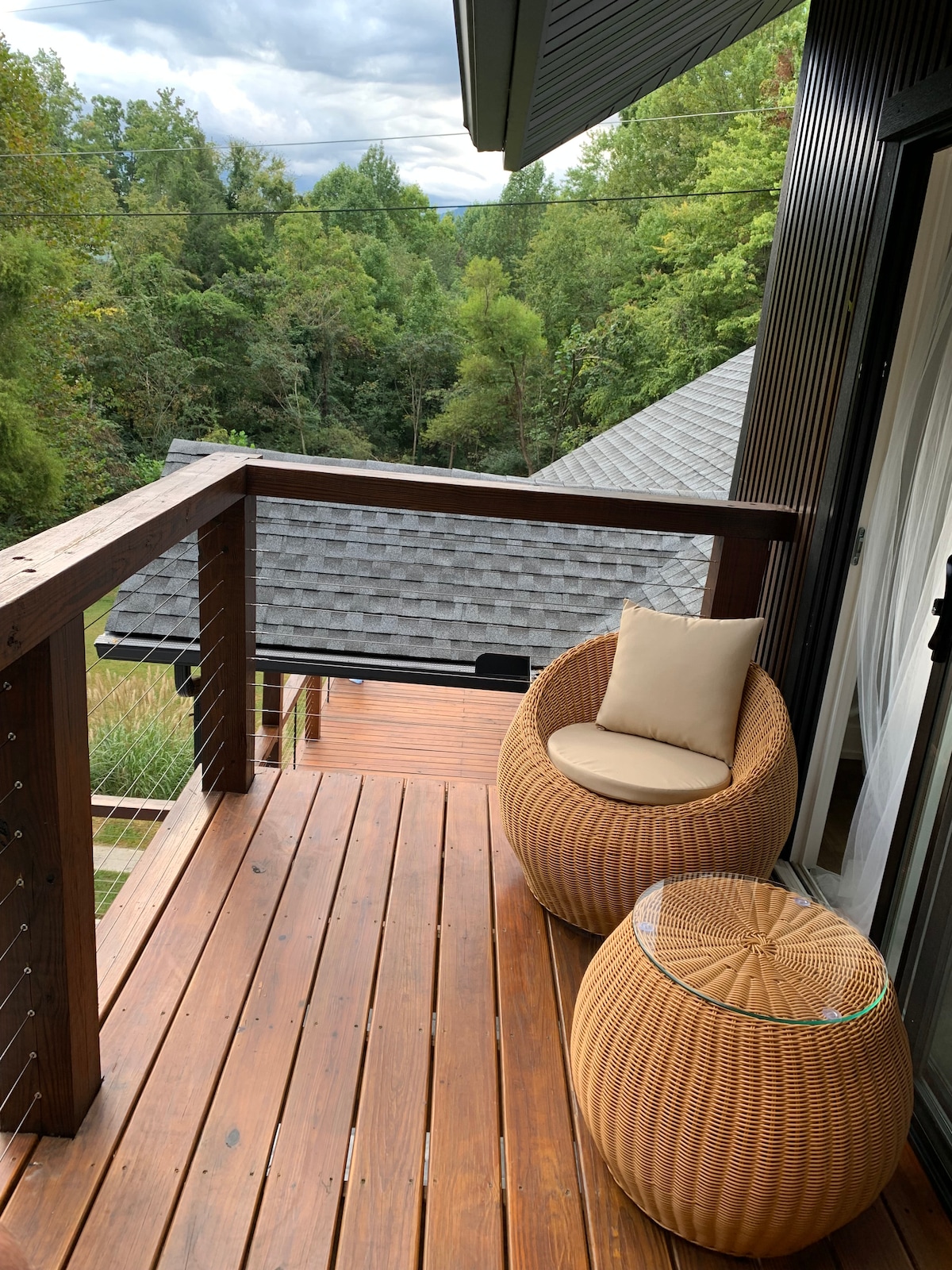 Ruby’s Cliffside is an amazing Studio (but with sleeping for 6 on 2 different levels), 2 Bath vacation home located at the top of Bluff Mountain. The views from this magnificent property are unlike any view in the entire area! Bring your binoculars to see Downtown Knoxville on a clear day from either of the home’s 2 spacious decks. Ruby’s Cliffside offers peace and serenity from the chaos of everyday life. The amenities of this home are just as unique as its architectural design.