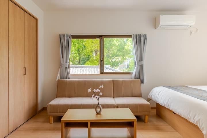 Una casa adosada tradicional de 100 años cerca de Abeno Harukas. Una casa totalmente privada y renovada que combina historia y comodidad. Una vez hogar de un maestro de Noh, sobrevivió a la Segunda Guerra Mundial y conserva los pilares originales y las muñecas Hina. ★ Pequeño jardín Zen con relajantes sonidos de agua ★ Secador de pelo y cabezal de ducha ReFa ★ Auto check-in con cerradura inteligente ■ Acceso • A 5 minutos caminando de las estaciones de JR y metro Tennoji. • Trenes directos a Namba y Umeda; Aeropuerto Internacional de Kansai en 35 minutos.