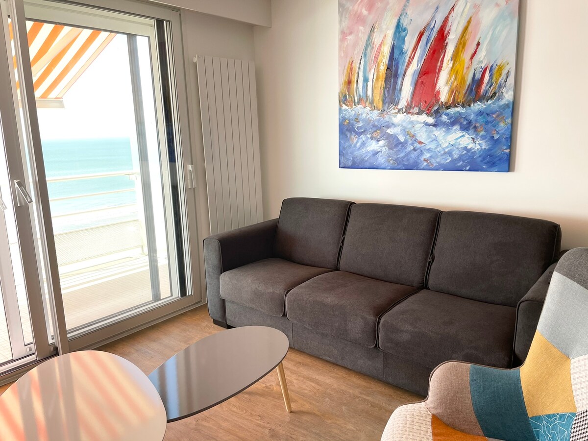 Appartement de 3 pièces ( 75m2) au 6ème étage avec ascenseur face à l'océan dans un immeuble de charme et de standing, l'ancien Grand Hôtel. Terrasse plein sud. Vue magnifique. Le centre ville et le marché sont à 10 minutes à pied. Idéal pour les familles, les amoureux, les amateurs de loisirs et activités. Stationnement facile et gratuit à proximité immédiate de la résidence. Vous aurez l'impression d'être sur un bateau.