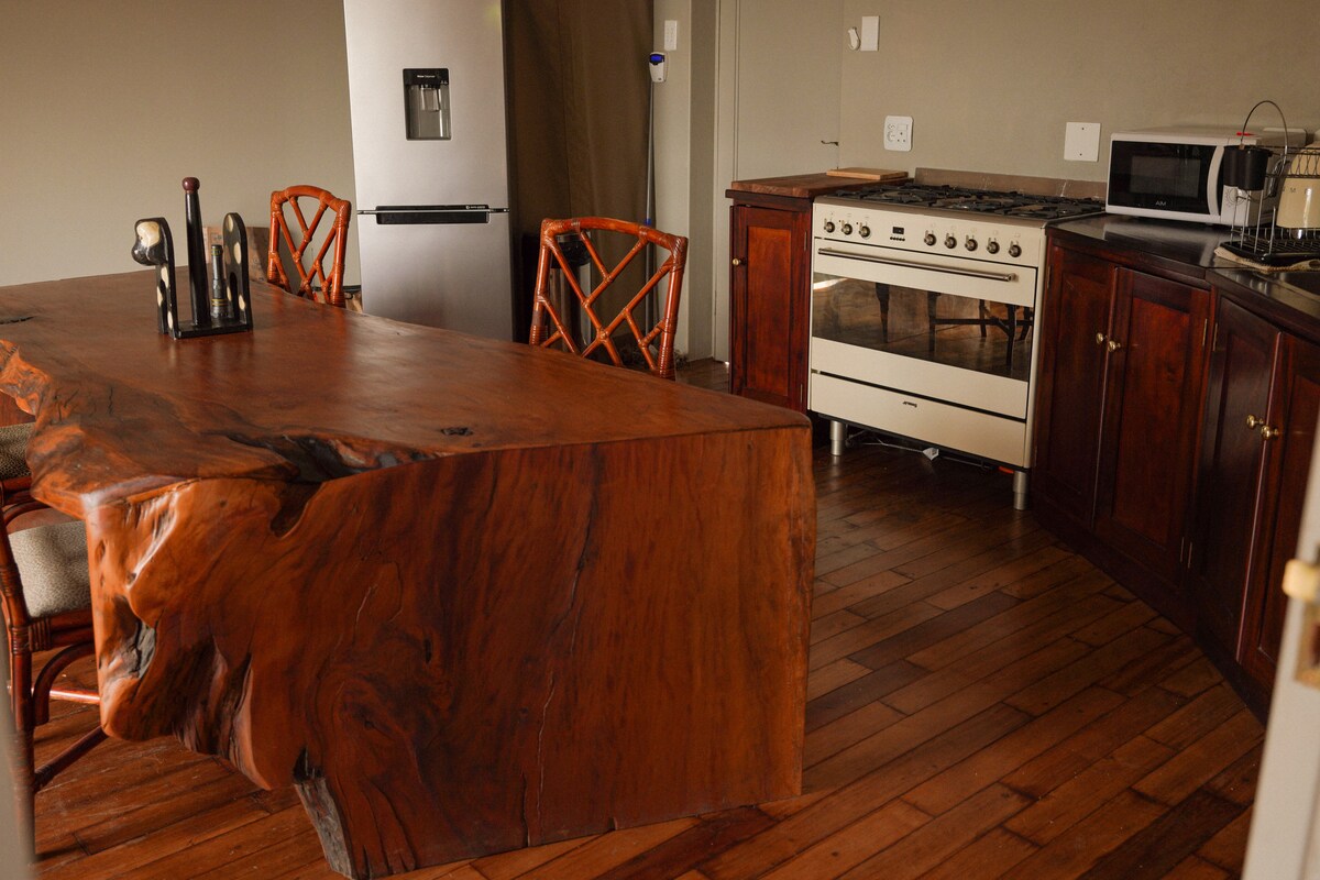 Ubicada a orillas del lago, dentro de 200 hectáreas de naturaleza salvaje, la tienda Themba de Rosemere ofrece un refugio para cuatro personas. Experimenta la tranquilidad del campo y deja que la naturaleza restaure tu espíritu. • Dos dormitorios con camas tamaño queen. • Dos baños privados, interior y exterior • Fogata con asientos y zona de barbacoa. • Cocina totalmente equipada con estufa, horno y electrodomésticos Smeg. • Paseos por la naturaleza • Natación en aguas abiertas en el lago. • Disfruta de los avistamientos de cebra, impala y blesbok a la vuelta de la esquina