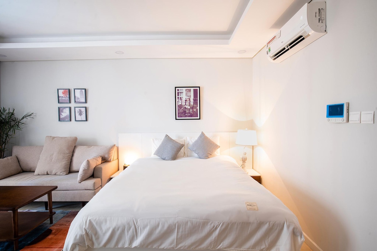 * This is a chain of modern apartments located in Hanoi's luxurious apartment complexes. D’capitale one of the best place to live, each apartment is tastefully decorated, sparkling clean and has a great city view, lake view from the best floors. We offer perfect accommodation for couples, families or single travelers. * This brand new studio has 1 King-sized bed, 1 private bathroom, living-room with comfy sofa for you relaxing with a smart TV 60 inch.