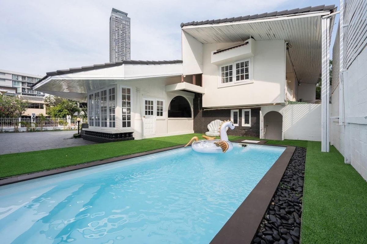 Set in one of the most desirable, safe and sought-after residential area of Bangkok. This villa truly offers everything from barbeque areas to a pool, while being a stone throw away from the center of Bangkok. The city's most popular parks, shopping malls, night life, public transportation and 5-star hotels are only a 10 - 20 minute walk away. The villa is perfect for family vacations, remote workers, business travelers and more.