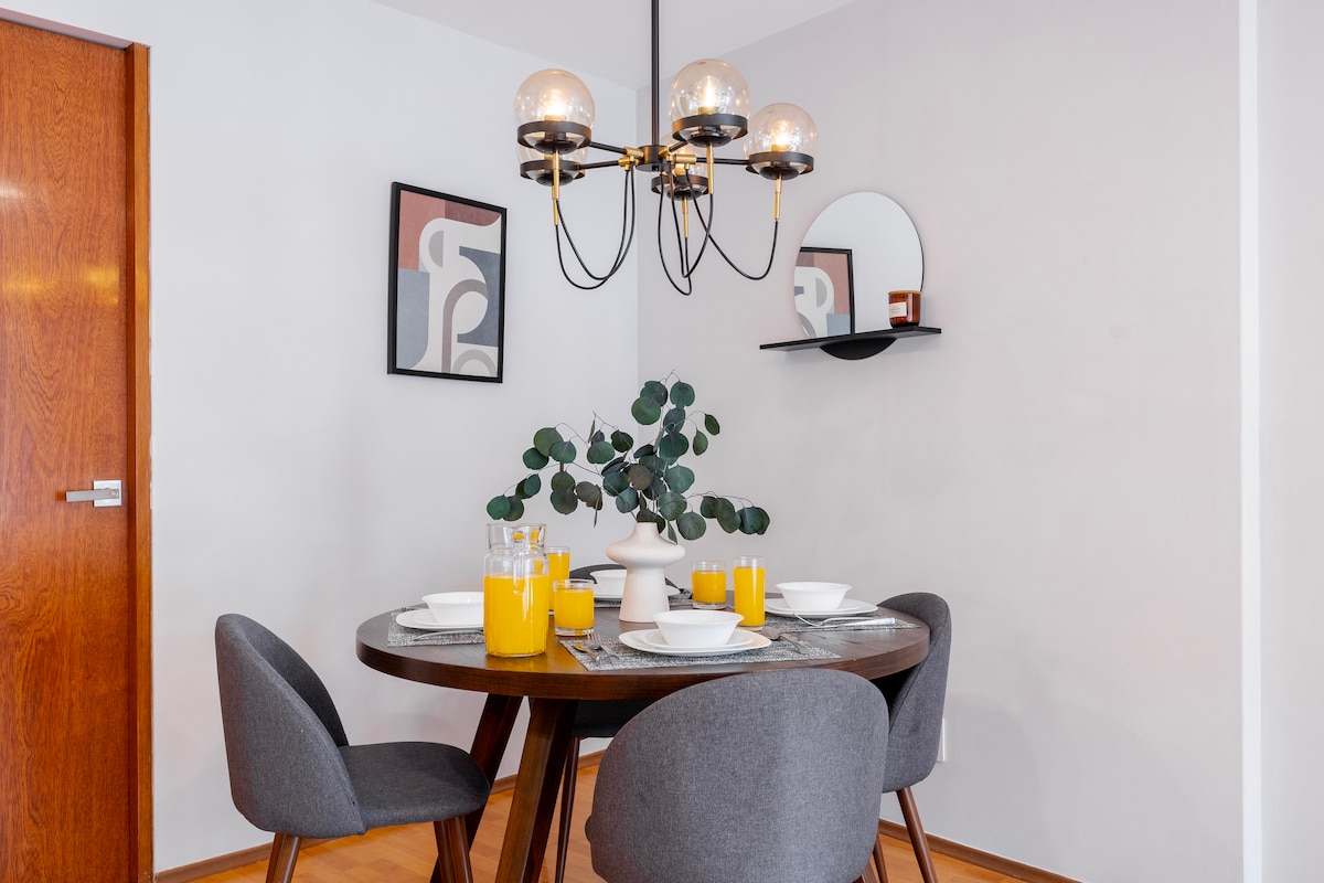Alójate en una de las calles más encantadoras y arboladas de Condesa. Este edificio restaurado de la década de 1950 ha conservado su autenticidad y carácter originales. El estilo modernista del apartamento se inspira en los años 50 con un toque contemporáneo actualizado. Los colores atrevidos y los elementos de decoración chic crean un ambiente elegante. El café y el desayuno de cortesía te prepararán para explorar el barrio y la ciudad, mientras que el cóctel de la casa te ayudará a relajarte una vez que regreses. Hemos creado un espacio de buen gusto, acogedor y cómodo para que tu estancia en la ciudad sea una experiencia completa. Servimos café y todos los elementos esenciales del desayuno que puedes disfrutar en la mesa del comedor, con vistas a la calle principal y al bonito balcón. La cama tamaño king supercómoda y las bonitas sábanas te asegurarán un buen descanso nocturno, preparándote para el día siguiente en esta extraordinaria ciudad. El balcón es un lugar ideal para relajarse mientras contemplas los hermosos árboles de la Avenida Veracruz frente a ti o la fuente más antigua de la ciudad a tu izquierda. Cocina totalmente equipada con todos los elementos esenciales y extras para que disfrutes. Cómodo baño con ducha de lluvia a buena presión y agua caliente. Se ofrecen servicios adicionales que se pueden organizar después de que se confirme la reserva. Estos incluyen: servicio de limpieza diario, lavandería y limpieza en seco, preparación de comidas, conductor y otros. ¡Solo tienes que decirnos cuáles son tus necesidades y nos aseguraremos de satisfacerlas! Estarás en un apartamento único y cómodo ubicado en una de las zonas privilegiadas de esta ciudad, justo donde Condesa se encuentra con Roma, rodeado de los principales accesos de transporte. Los huéspedes podrán acceder al apartamento completo, al que se accede por una entrada privada. Esta entrada conduce a ambos apartamentos que tenemos, por lo que la compartirás con otros huéspedes de Airbnb. Tener una entrada privada y una escalera, con llegada autónoma y puerta de entrada sin llave, dará a los huéspedes más privacidad y comodidad durante su estancia. Los horarios de llegada y salida se acordarán previamente. Siempre somos flexibles, tratando de adaptarnos a los horarios de llegada y salida de los huéspedes. Nuestra guía de la ciudad se hizo con mucho amor, compartiendo nuestros lugares favoritos y más valorados de la ciudad. Y siempre estamos disponibles para cualquier pregunta o ayuda que los huéspedes puedan necesitar durante su estancia. Con sus calles arboladas, dos parques y los mejores bares y restaurantes, la colonia Condesa, o «La Condesa», es uno de los barrios más populares y encantadores de la ciudad. El Castillo de Chapultepec, el Paseo de la Reforma y el metro Chapultepec están a un paso de distancia. Caminar es la mejor opción, especialmente porque hay mucho que ver y explorar en Condesa y otros barrios cercanos, como Roma. Todo el transporte público principal está a solo una manzana de distancia. La línea de metro que para aquí, la parada de Chapultepec, te lleva directamente al centro de la ciudad. Si prefieres viajar en coche, Uber es siempre la opción más eficiente y bastante barata. También contamos con un gran conductor de confianza que ofrece servicios de transporte a lugares como Teotihuacán, donde se pueden ver las magníficas Pirámides del Sol y la Luna.
