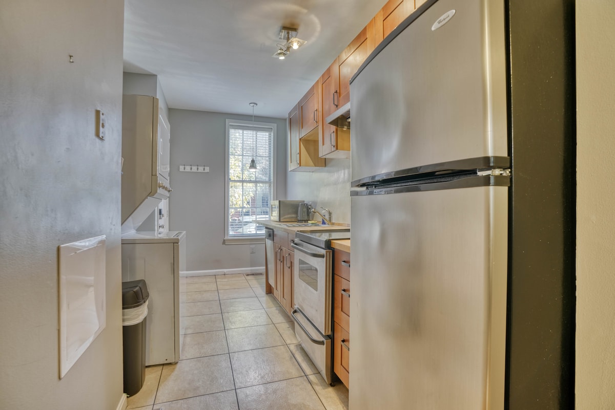 A pocos pasos del puerto interior de Baltimore, Fells Point, Little Italy y el hospital John's Hopkins, este apartamento de un dormitorio totalmente equipado tiene todo lo que necesitas. Esta unidad moderna y contemporánea dentro de una de las casas adosadas históricas de Baltimore (construida en 1850) cuenta con techos altos y hermosos ventanales del suelo al techo. El apartamento incluye cocina completa, baño completo, un dormitorio con espacio de oficina, sala de estar con TV de alta definición y sofá cama, y lavadora/secadora en la unidad. ¡También hay una bicicleta disponible para su uso!