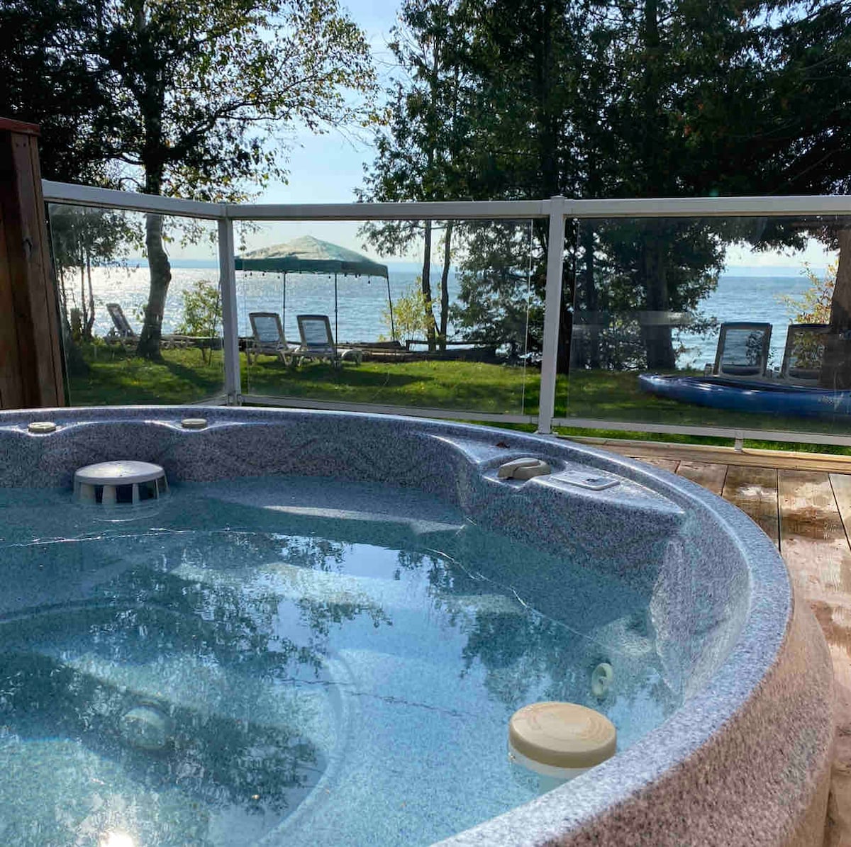 Esta casa de playa fue diseñada pensando en la relajación y el disfrute de la unión. Deja que tus preocupaciones se desvanezcan mientras te deslizas en la calidez de este jacuzzi junto al agua con impresionantes vistas a la bahía Georgiana y a la ladera de la montaña, mientras la nieve fresca cae a tu alrededor. El diseño de concepto abierto hace que este sea el lugar perfecto para reunirse con familiares y amigos con patio frente al mar y acceso al muelle para nadar. A 2 minutos del centro de Meaford, a 20 minutos de Blue Mtn, a 1,5 horas de Tobermory. Rutas de senderismo.