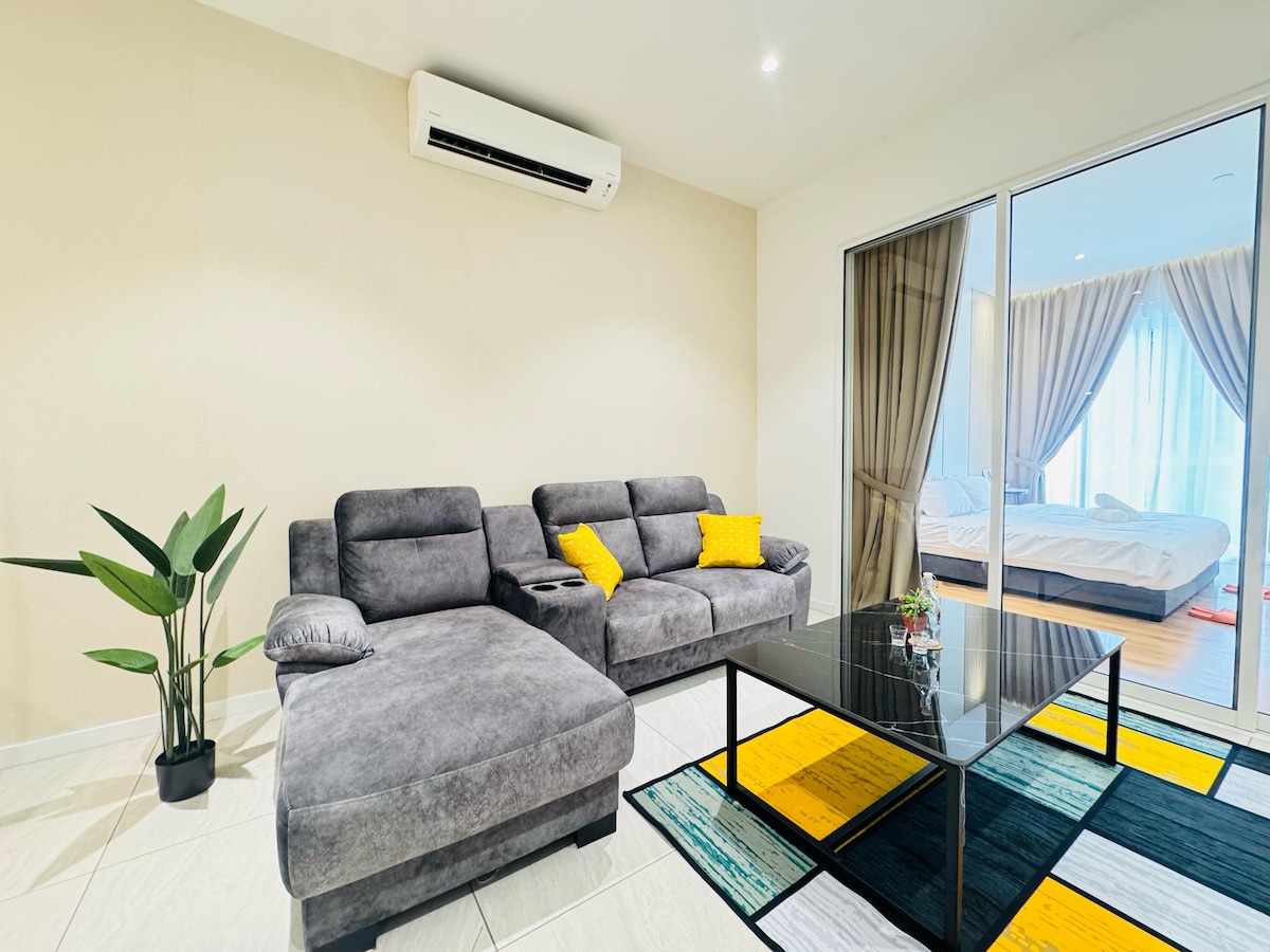 Alójese en un estudio único de estilo loft en Luxe Infinitum KLCC, ideal para un máximo de 3 huéspedes. Ubicado junto al centro comercial Quill City Mall, a pocos pasos de la estación de monorriel y del pueblo de Kg Baru, y a poca distancia en auto de KLCC. Este alojamiento cuenta con una zona para dormir en la planta superior (1 cama tamaño queen + 1 cama individual), que ofrece un espacio de descanso acogedor y privado. Por favor, ten en cuenta que: - Se requiere subir escaleras, no hay cocina (solo microondas, hervidor de agua y una mesa sencilla con un taburete alto) - La entrada principal se comparte con otro estudio situado en la planta superior.