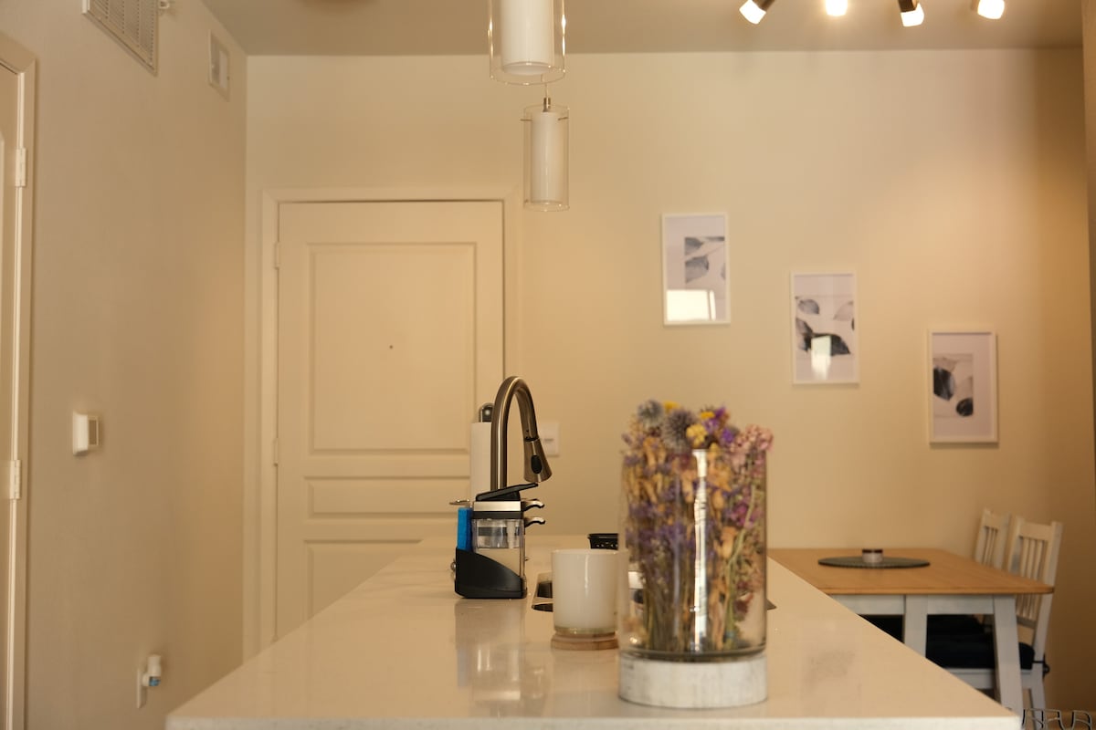 ¡Disfruta de una experiencia acogedora y siente las vibraciones festivas en esta morada céntrica ubicada en la mejor parte del elegante y exclusivo vecindario de Domain! Disfruta de las inmejorables vistas de la zona en acción. Un televisor inteligente de 65 pulgadas en la sala de estar permite el entretenimiento, así como un comedor lleno de juegos de mesa. El gran gimnasio moderno de dos pisos tiene máquinas y pesas de lujo. Los muebles elegantes y los toques de color llamativos crean un ambiente sereno inspirado en un penthouse. ¡Traslado gratuito al aeropuerto bajo pedido!📲☕️