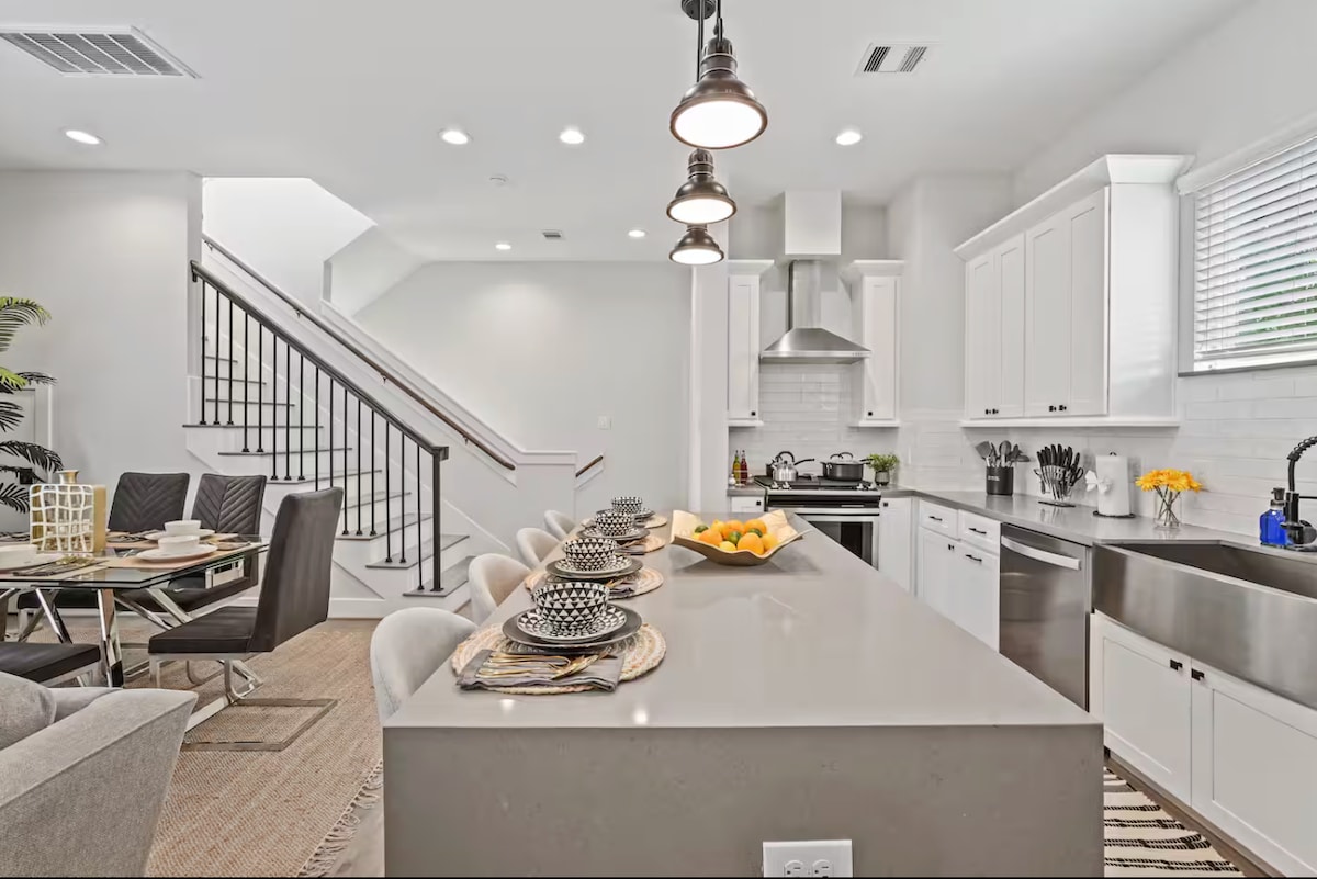 ¡Te damos la bienvenida a nuestro moderno apartamento de Midtown! Ubicada en el corazón del próspero barrio de Midtown de Houston, esta espaciosa casa de 3 dormitorios y 2,5 baños es perfecta para grupos más grandes o familias. A pocos pasos de los mejores restaurantes, bares y tiendas, y a poca distancia en coche del centro de la ciudad, este apartamento está diseñado para que tu estancia sea cómoda y práctica, ya sea que estés de visita por trabajo, ocio o unas vacaciones en Houston.