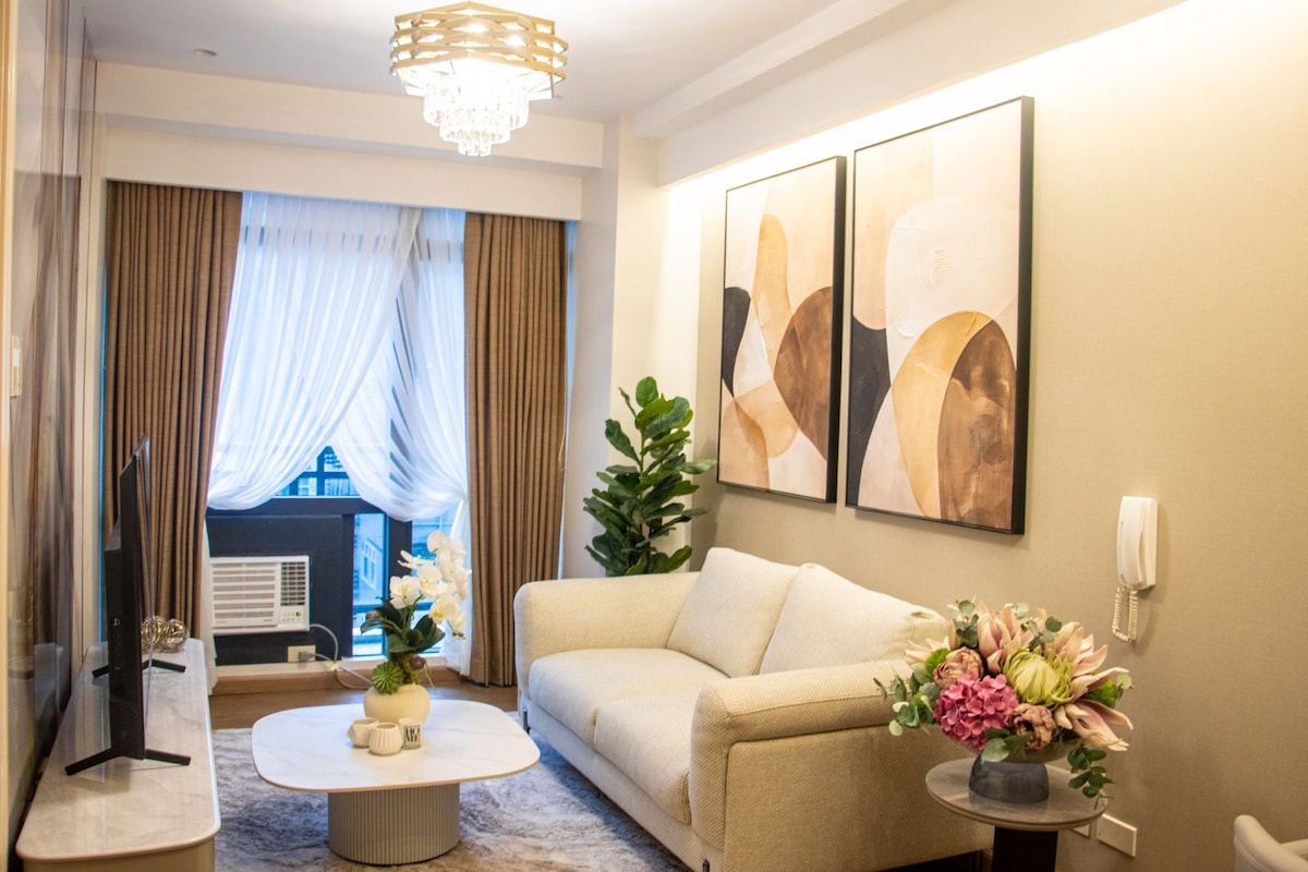 Book this luxury stay at the center of BGC. Everything is just a few steps away. Prime offices and high end malls surround The Infinity. Experience a cosmopolitan getaway. Explore unique food and shopping finds. Party the night away at premier bars right within the area. Unwind in our mid-century modern bedroom unit with a queen sized bed and a 50” smart tv. Enjoy your fave movie on a 65” smart tv in the living area. 400 MBPS internet provided for your work from home or surfing.