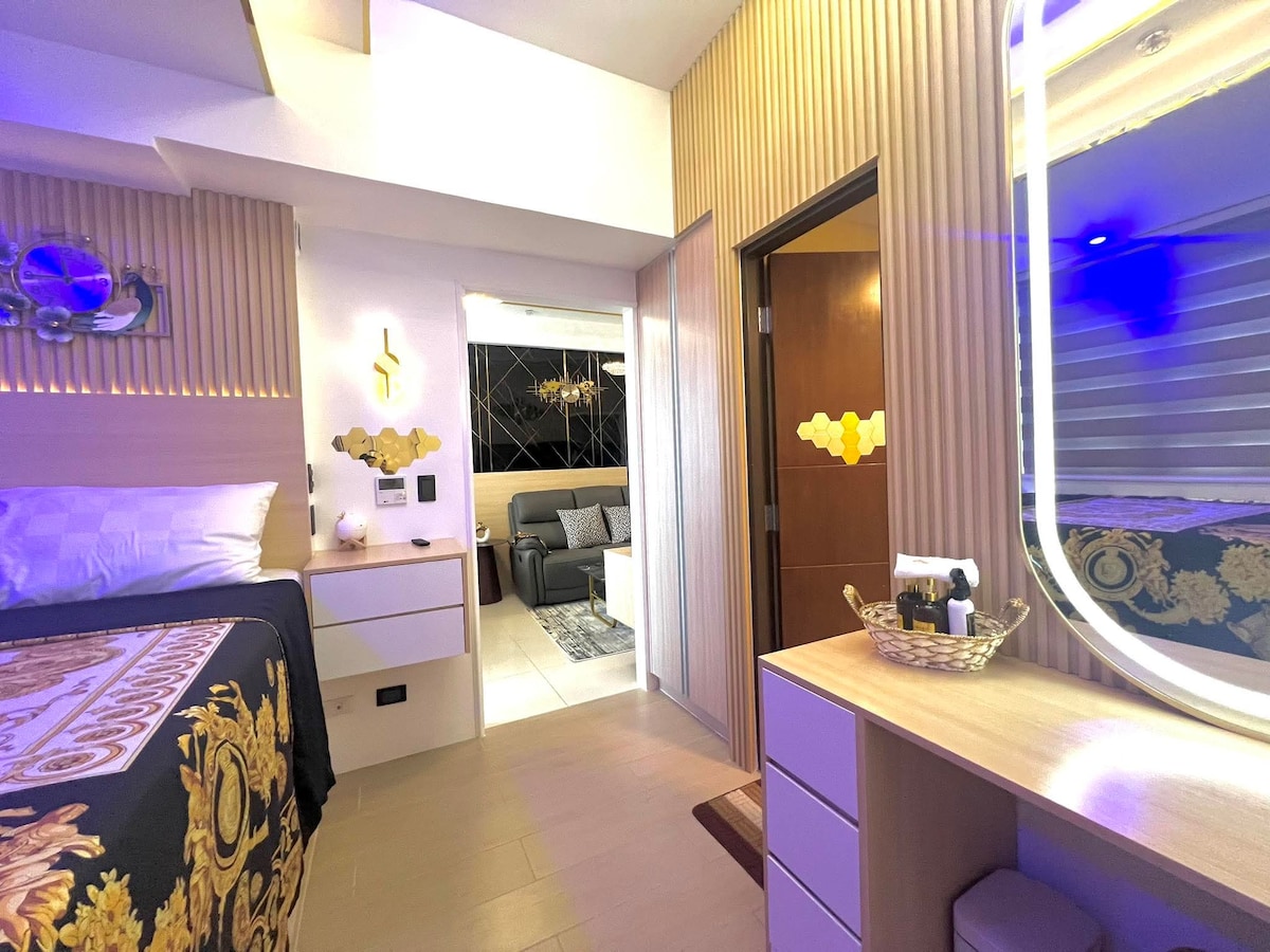 Tu acogedor apartamento de un dormitorio, en esquina, con un toque minimalista, más privacidad y una vista serena del mar. La limpieza y la comodidad son nuestra máxima prioridad para viajeros como tú. A solo unos pasos de Starbucks, Robinsons, Watsons, restaurantes, 7-11, McDonalds y casi cualquier cosa que necesites en tu moderna vida isleña. Envíame un mensaje para saber más. ☺️