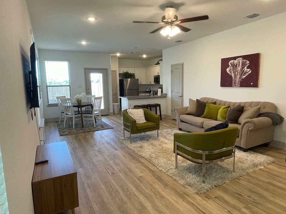 Alójate en esta tranquila escapada con 3 acogedoras habitaciones y 2,5 baños. Tendrás tranquilidad al alojarte en esta comunidad cerrada de nueva construcción. Esta estadía es una mezcla de vibraciones salvajes del oeste y diseño moderno relajado. Disfruta de un café en el patio trasero con vistas a una gran extensión de vegetación. Hay un gran patio trasero y un parque comunitario a pocos pasos. A poca distancia en coche de SeaWorld, Six Flags, Lackland AFB, Government Canyon y el Complejo Nacional de Tiro.