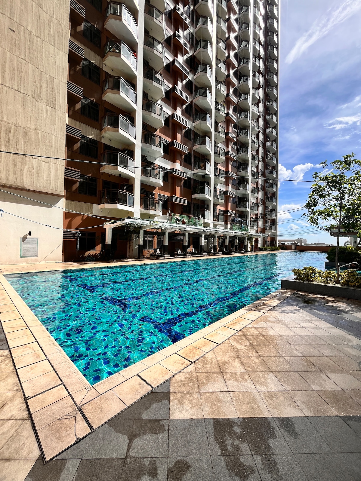 Moderno y espacioso 1BR con balcón y piscina a pocos kilómetros del aeropuerto y a pocos pasos de numerosas atracciones en el área de la bahía de Manila. Cocina bien equipada, sala de estar iluminada por el sol, cama cómoda, wifi, Netflix, aire acondicionado y TV tanto en la sala de estar como en el dormitorio. Alojamiento perfecto para parejas, familias pequeñas o viajeros de negocios. Sauna y área de juegos para niños - de uso gratuito Piscina: gratuita para un máximo de tres huéspedes; P200 por cada huésped adicional.