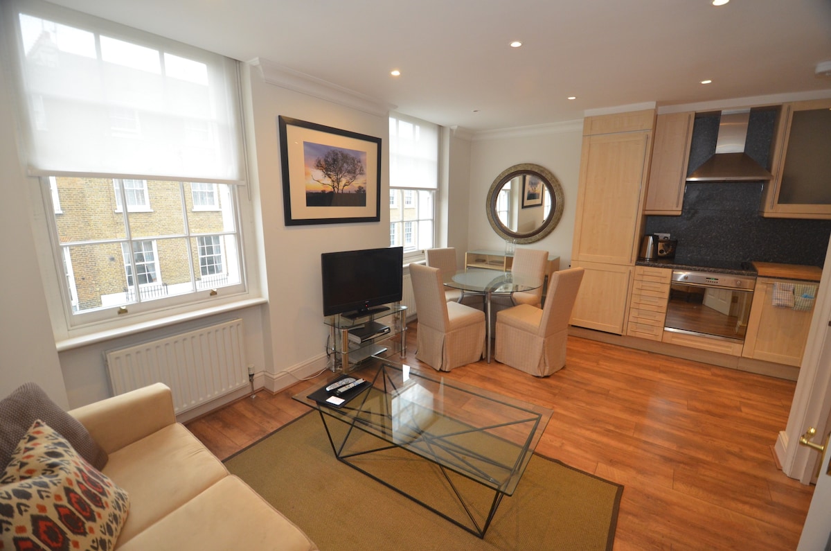 An ideal located one-bedroom flat which is fantastic for short or long stays. Located in a period building in Gloucester Place. Rooms are extremely clean & the location is very suitable to access the tube, buses & Oxford Street. Open plan living / kitchen with very high ceilings. Separate & quiet rear facing bedroom with large wardrobe, bay window. Bathroom with a stand-up shower & bath. Short walk to Baker Street, Marylebone, Regents Park, the West End & Oxford Street.