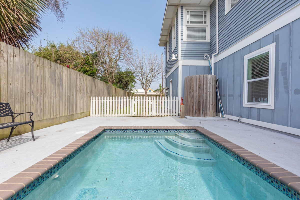 Located on a quiet street just steps away from the Seawall, this upstairs unit has 2 bedrooms clad in original stained shiplap and a porch to watch the sunrise over the gulf every morning. Just behind Brickhouse & Joe's Crab Shack, it has food, drinks, and the beach all within a short walking distance. When you feel like relaxing but don't feel like getting sandy, this house has a great soaking pool right outside to unwind at the end of the day. Don't miss this great Galveston getaway!