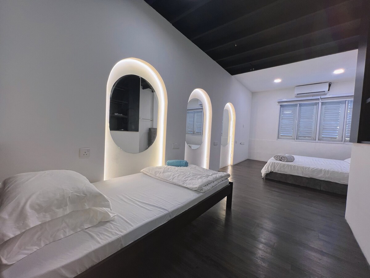 Bienvenido a Arc & Glow, una nueva casa de diseño en Macalisterz 22, ubicada en el corazón de George Town, Penang. Diseñado cuidadosamente con elegancia moderna y tonos tranquilos, este alojamiento es perfecto para los huéspedes que valoran la comodidad y la limpieza. Priorizamos la calidad del sueño, con un colchón de grado hotelero que es de apoyo y cómodo, no demasiado suave. Nos encantará recibirte y ofrecerte una estancia sencilla, elegante y verdaderamente cómoda.
