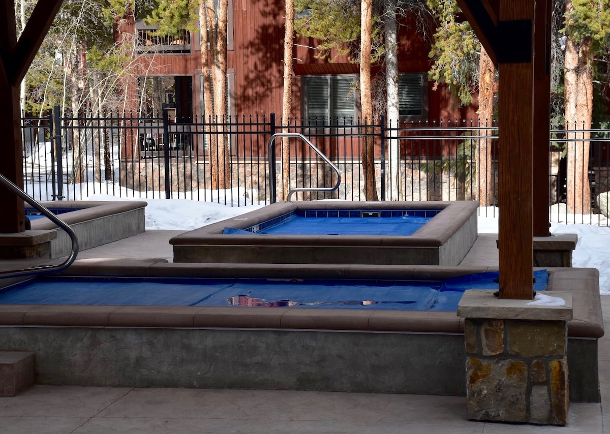 Tenga en cuenta que el check-in anticipado/check-out después de la hora establecida no está disponible. Complejo de piscinas cerrado del 27 de abril a mediados de mayo de 2026 ¡Bienvenido a tu acogedora escapada en Breckenridge! Más de 700 reseñas de 5 estrellas no pueden estar equivocadas. Nuestro condominio es cálido y acogedor. Ubicado en una zona tranquila pero conveniente muy cerca de ascensores y de la ciudad. Relájate en tu patio en tus sillas Adirondak por la mañana y luego usa las batas proporcionadas para dar un paseo fácil hasta la piscina y las bañeras de hidromasaje después de un día de esquí o senderismo. Servicios tamaño king. ¡Precios asequibles!