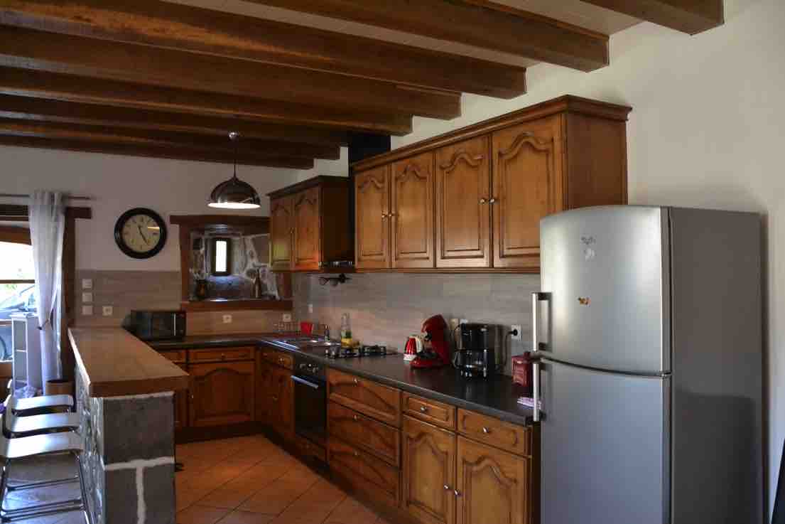Nous vous accueillons, été comme hiver, dans notre gîte (ancienne grange rénovée) tout confort, à la décoration soignée, au pied des chemins de randonnées et à 20 min de la station du Lioran pour des vacances chaleureuses. Le gîte, avec une surface de 65 m², peut accueillir 4 à 5 personnes. C'est un espace ouvert comportant : une chambre spacieuse avec un lit 160, 1 salle d'eau, une mezzanine avec 2 lits 90, un coin cuisine (tout équipé), un coin salle à manger/salon avec son poêle à bois.