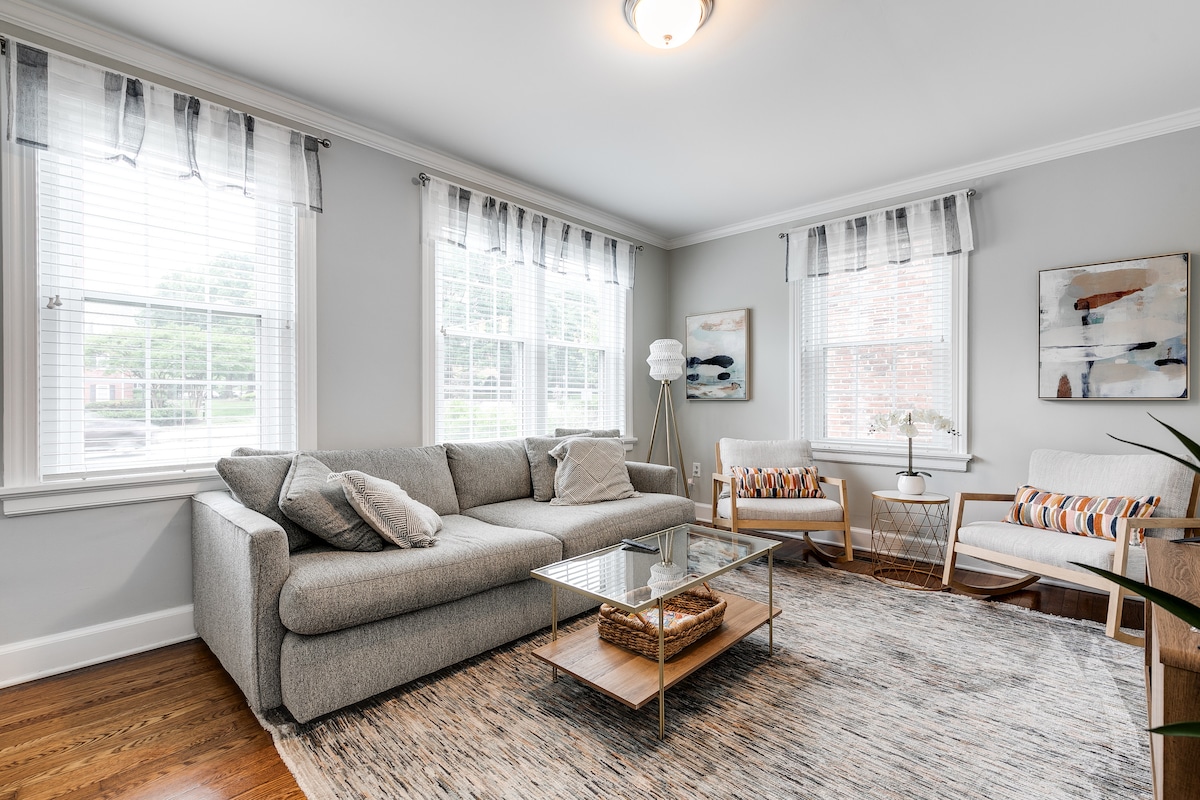 Te damos la bienvenida a nuestro alojamiento totalmente renovado con un encantador porche delantero y un gran patio trasero privado a solo unos pasos de St. Mary 's Hospital & The Shops at Willow Lawn. Camine hasta Starbucks, Kroger, Chic-fil-A y más, además de tener espacio para tres automóviles en nuestra entrada pavimentada. Nuestro hogar se sitúa perfectamente en cuestión de minutos de la universidad de Richmond, del club de campo de Virginia, de la adición de Scott, de la zona céntrica, de Carytown, y de la avenida de Libbie. ¡Experimenta la magia de Midtown!